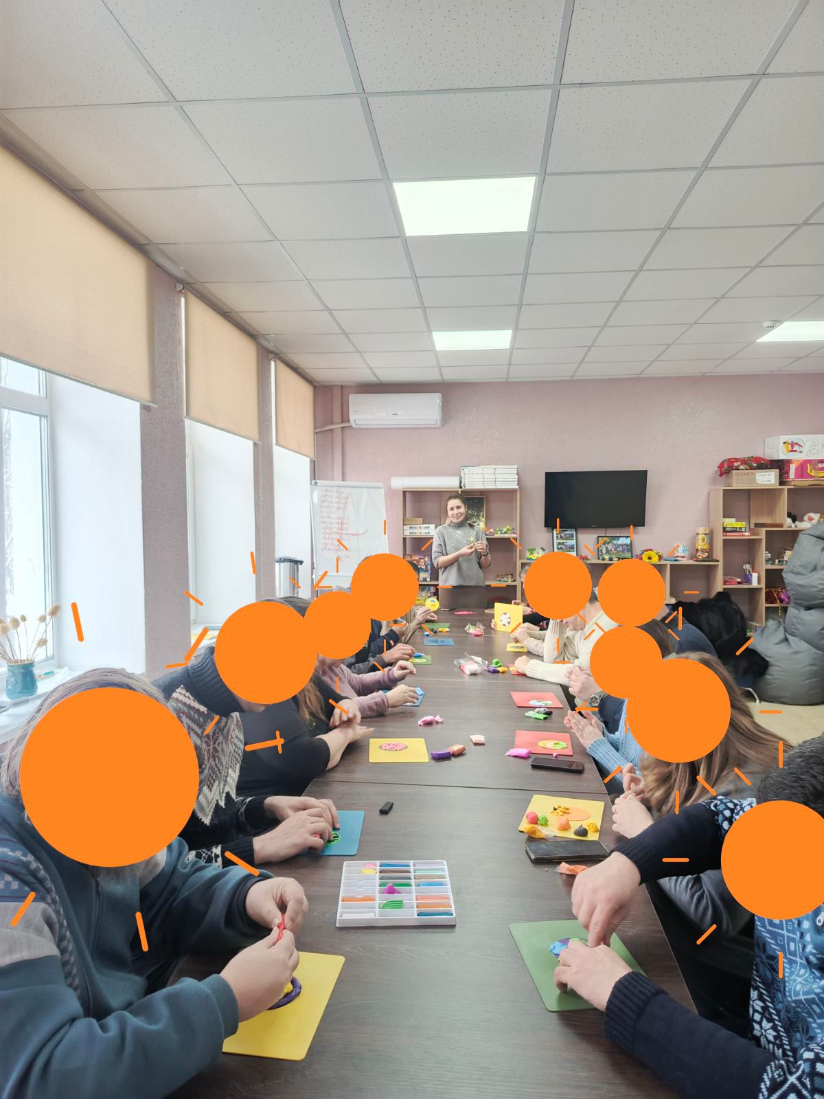 💡Через прості дії, колір і дотик учасники мали можливість побути в стані «тут і тепер», відчути власні ресурси та радість від завершеної роботи.