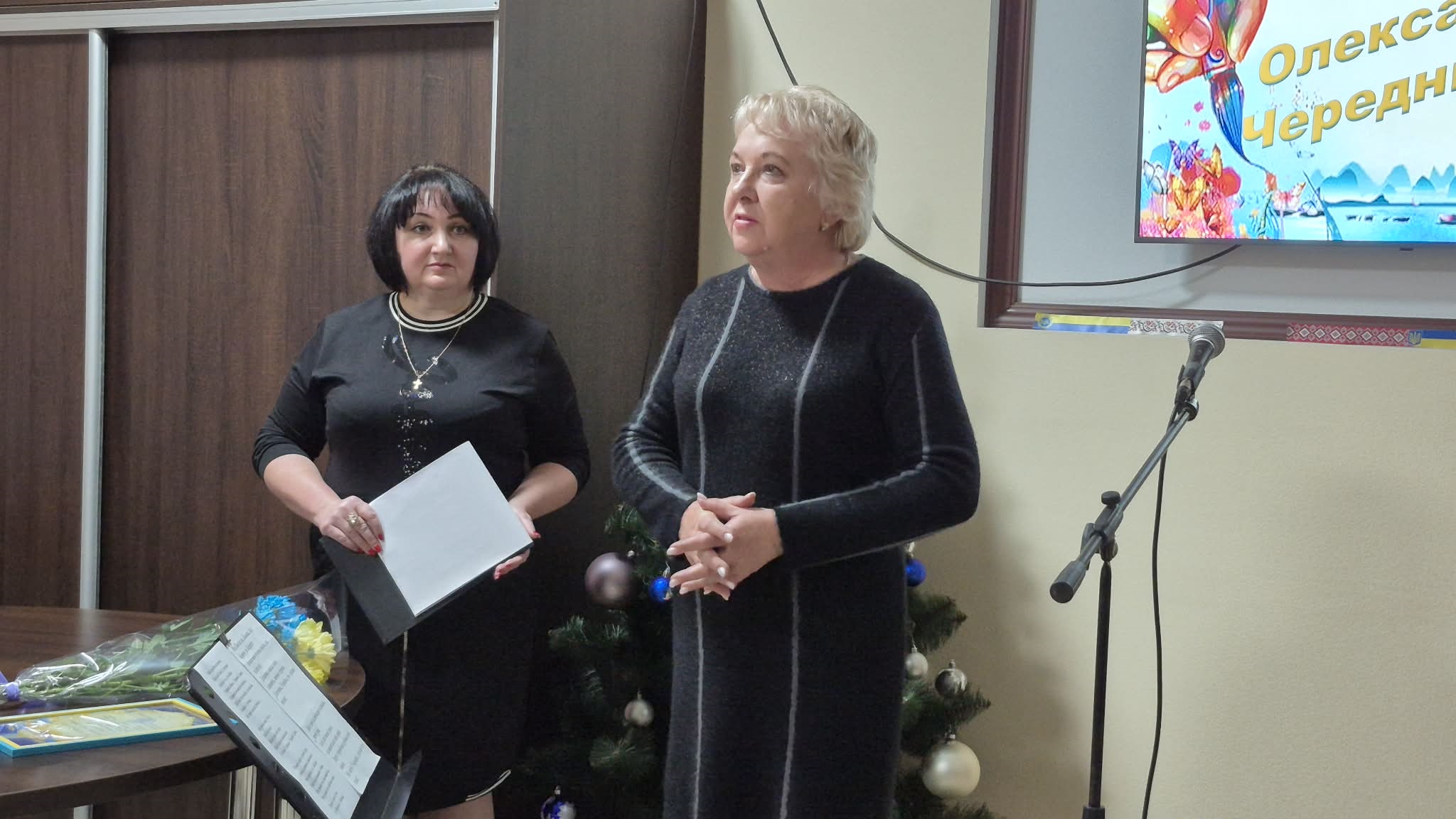 Зі словами привітання до художника звернулася виконуюча обов’язки міського голови Світлана Горошко, яка подякувала митцю за особливу увагу до Лебединського краю, активну громадянську позицію та внесок у популяризацію українського мистецтва. На знак вдячності Олександру Чередниченку вона вручилапочесну грамоту.