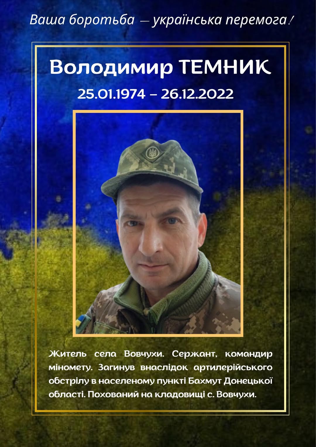 У треті роковини загибелі згадуємо Героя з Вовчух Володимира Темника (25.01.1974 р.н.)