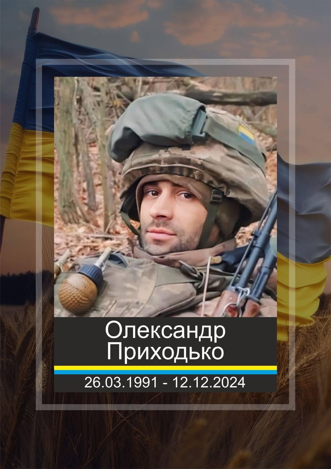 12 грудня минає рік, як до небесного війська приєднався наш мужній Захисник – Олександр Приходько.
