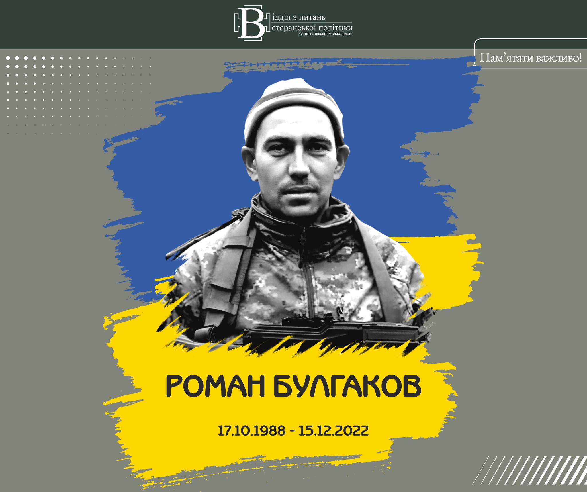 Сьогодні минають роковини з дня загибелі нашого земляка БУЛГАКОВА Романа. До мобілізації Захисник проживав у м.Решетилівка.
