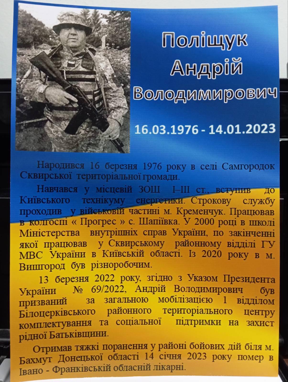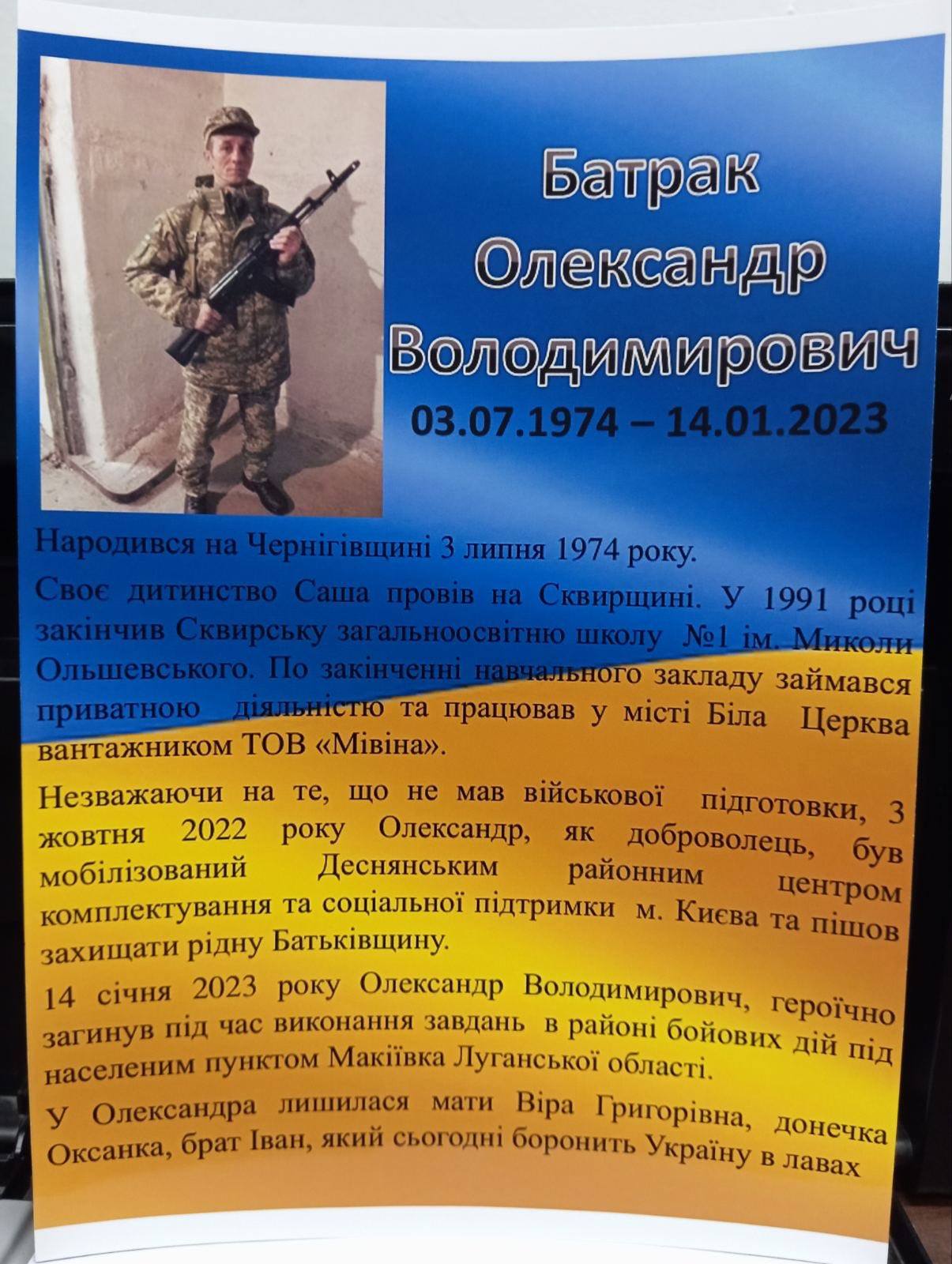 Батрака Олександра Володимировича та Поліщука Андрія Володимировича — відважних воїнів, які віддали свої життя, захищаючи рідну землю, наші родини та наше майбутнє.
