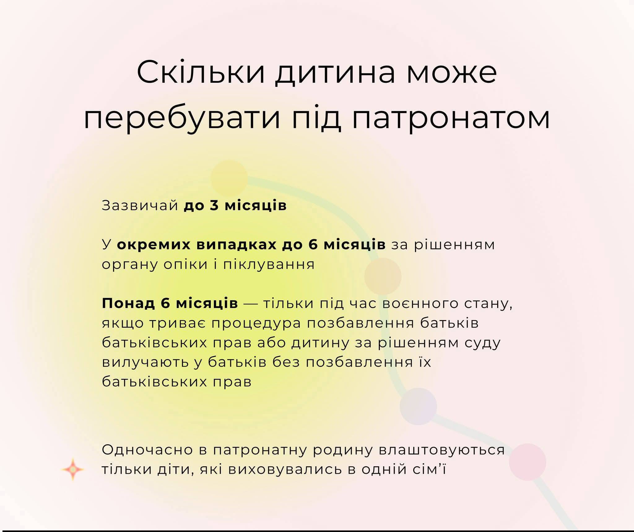 І навіть якщо дитина більше не може жити з біологічною родиною (у разі позбавлення батьків батьківських прав або, на жаль, у разі їхньої загибелі через російську війну) вона перебуває в патронатній сім’ї, поки для неї шукають опікуна, прийомну сім’ю тощо.