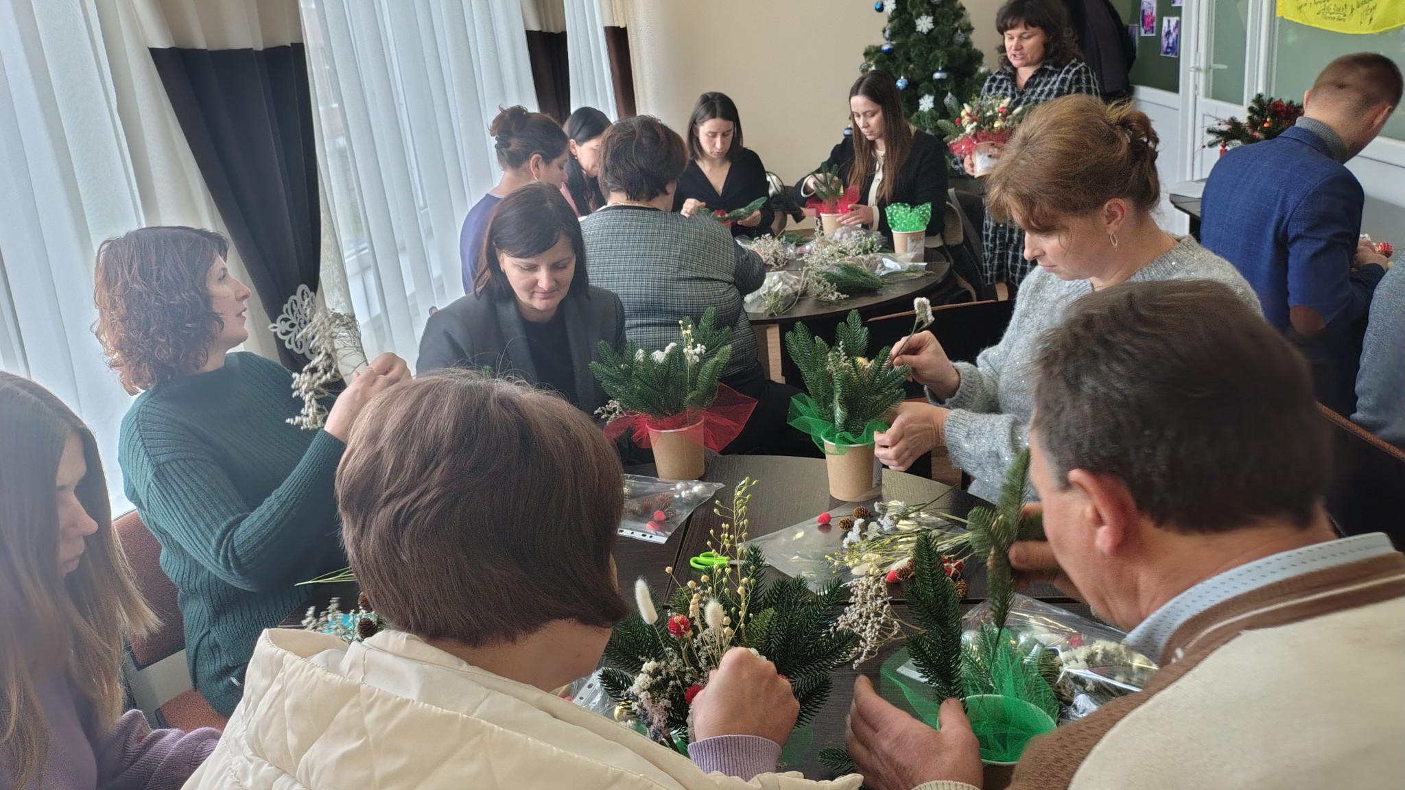 Учасники заходу поділилися власним педагогічним досвідом. взяли участь у майстер-класі з виготовлення новорічної композиції із сухоцвітів, пройшли тестування в застосунку Дія.Освіта та отримали сертифікати за курсом «Бути поруч: основи психологічної підтримки тим, хто працює з дітьми».