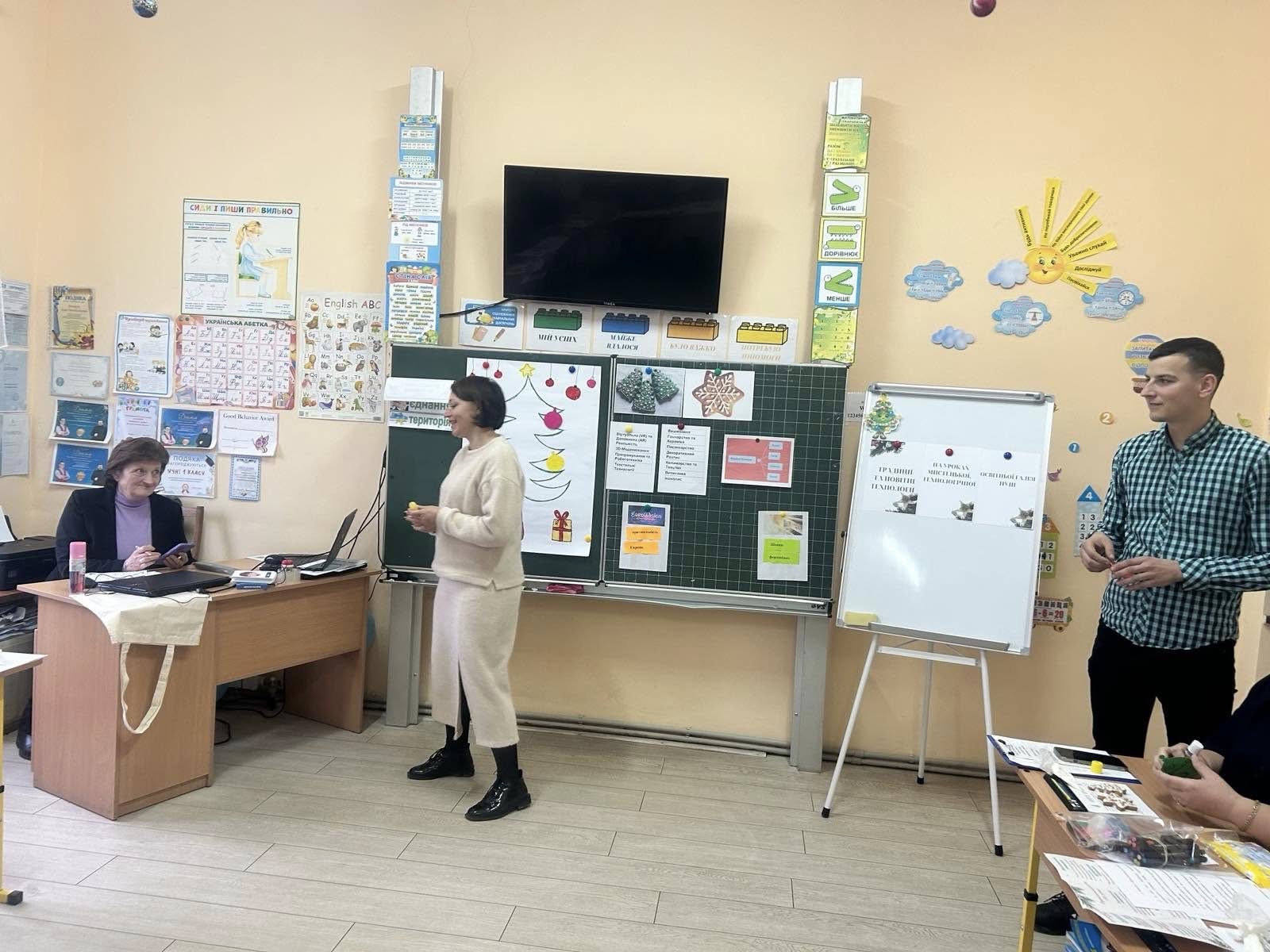 У теоретичному блоці Юлія Коляда зосередила увагу на особливостях сучасного уроку, підкресливши важливість гармонійного поєднання традиційних і інноваційних технологій навчання.