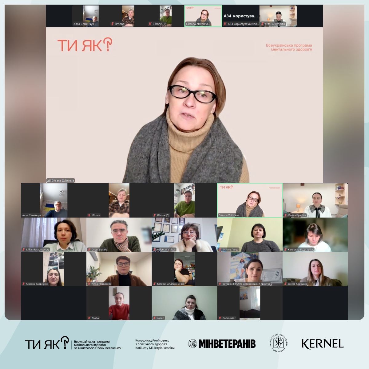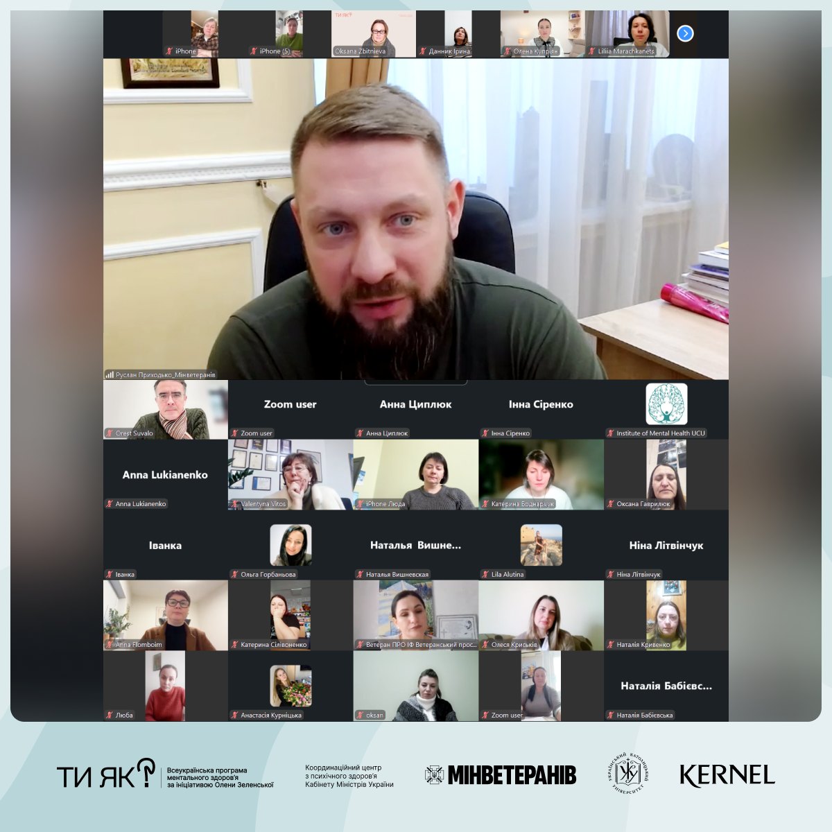 ✅ Стартувало навчання за сертифікатною програмою. Освітній проєкт «Рівна-рівній: проживання досвіду втрати» створено в межах Всеукраїнської програми ментального здоров’я Ти як? – ініціативи першої леді Олена Зеленська – Координаційний центр КМУ / Mental Health UA спільно з Мінветеранів за підтримки компанії Kernel – учасника спільноти «Бізнес без бар’єрів».