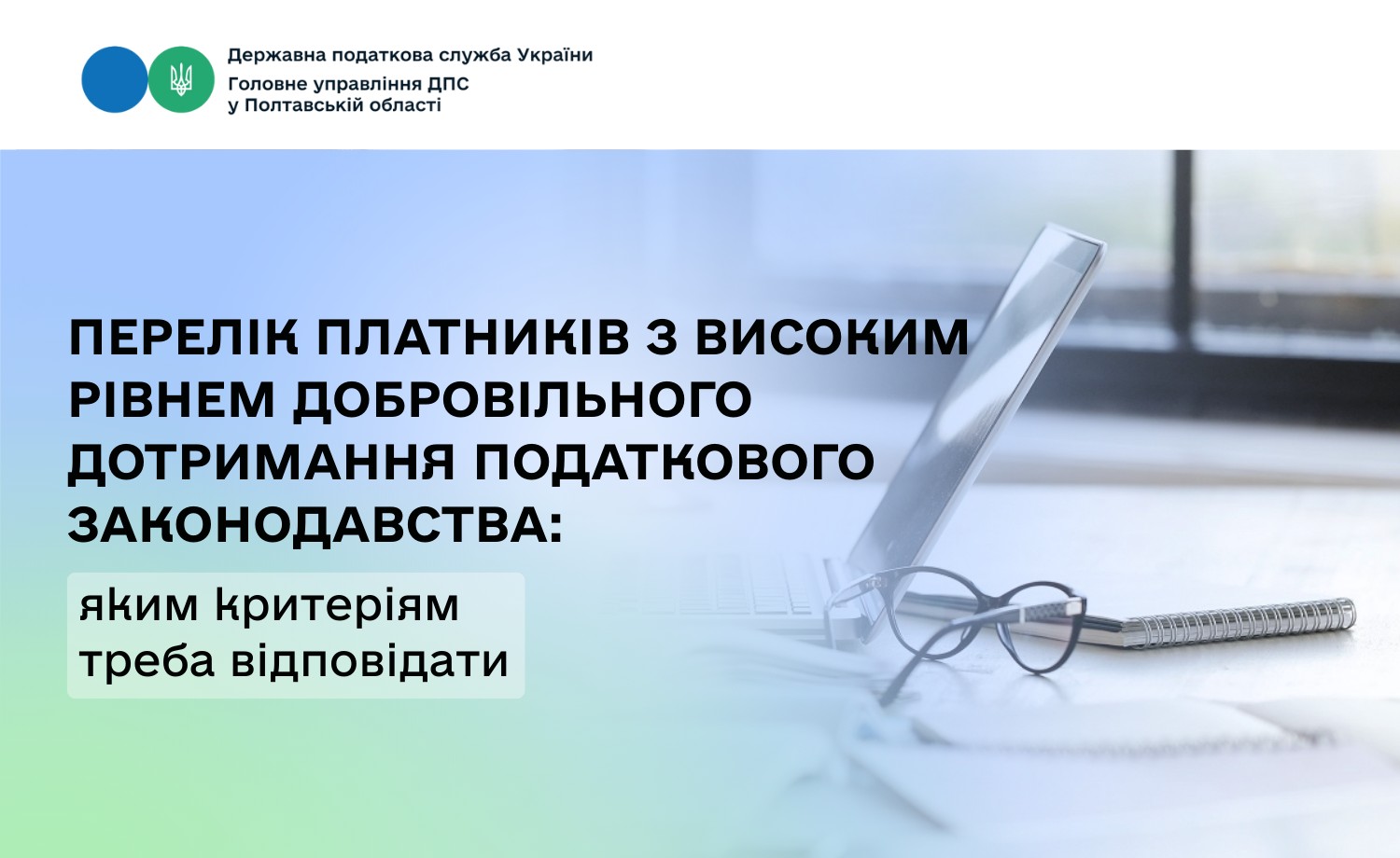 Головне управління ДПС у Полтавській області нагадує, щоквартально Державна податкова служба формує Перелік платників з високим рівнем добровільного дотримання податкового законодавства та публікує його на вебпорталі ДПС.