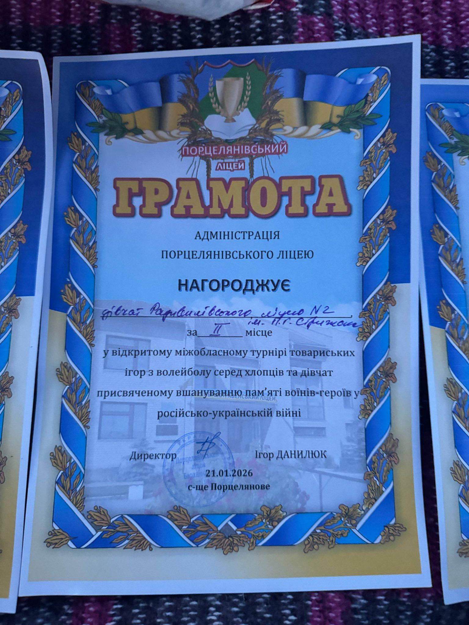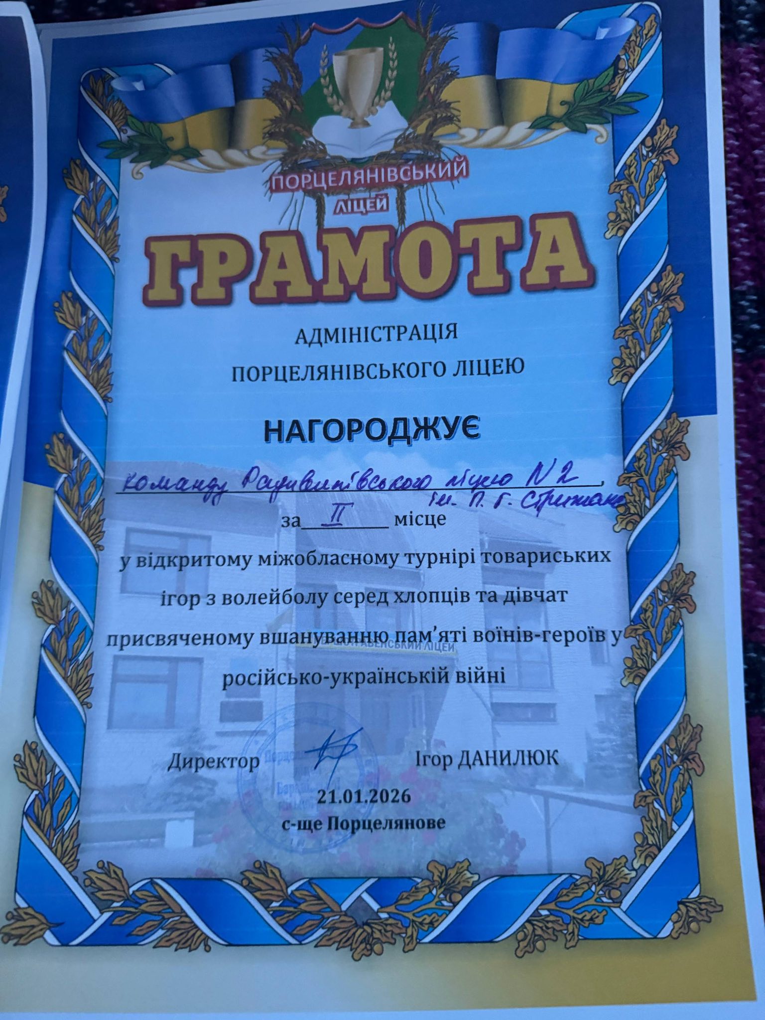 21 січня 2026 року у селищі Порцелянове Баранівської громади Житомирської області відбувся відкритий міжобласний турнір товариських ігор з волейболу серед хлопців та дівчат, присвячений вшануванню пам’яті воїнів-героїв російсько-української війни.