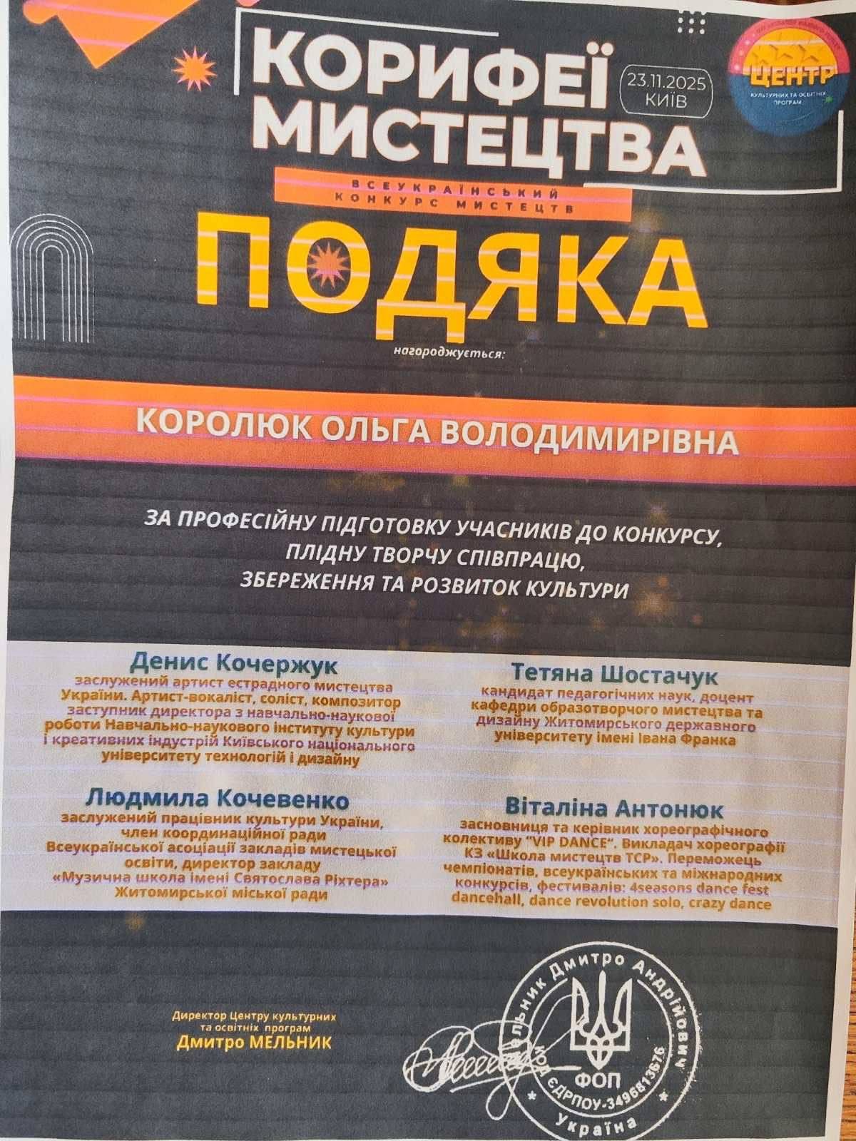 Ансамбль «HarmoniХміль» здобув І місце у Всеукраїнському конкурсі мистецтв «Корифеї мистецтва» (м. Київ)🏆 а також І місце у Міжнародному двотуровому конкурсі мистецтв «Сузір’я талантів України» (м. Київ).