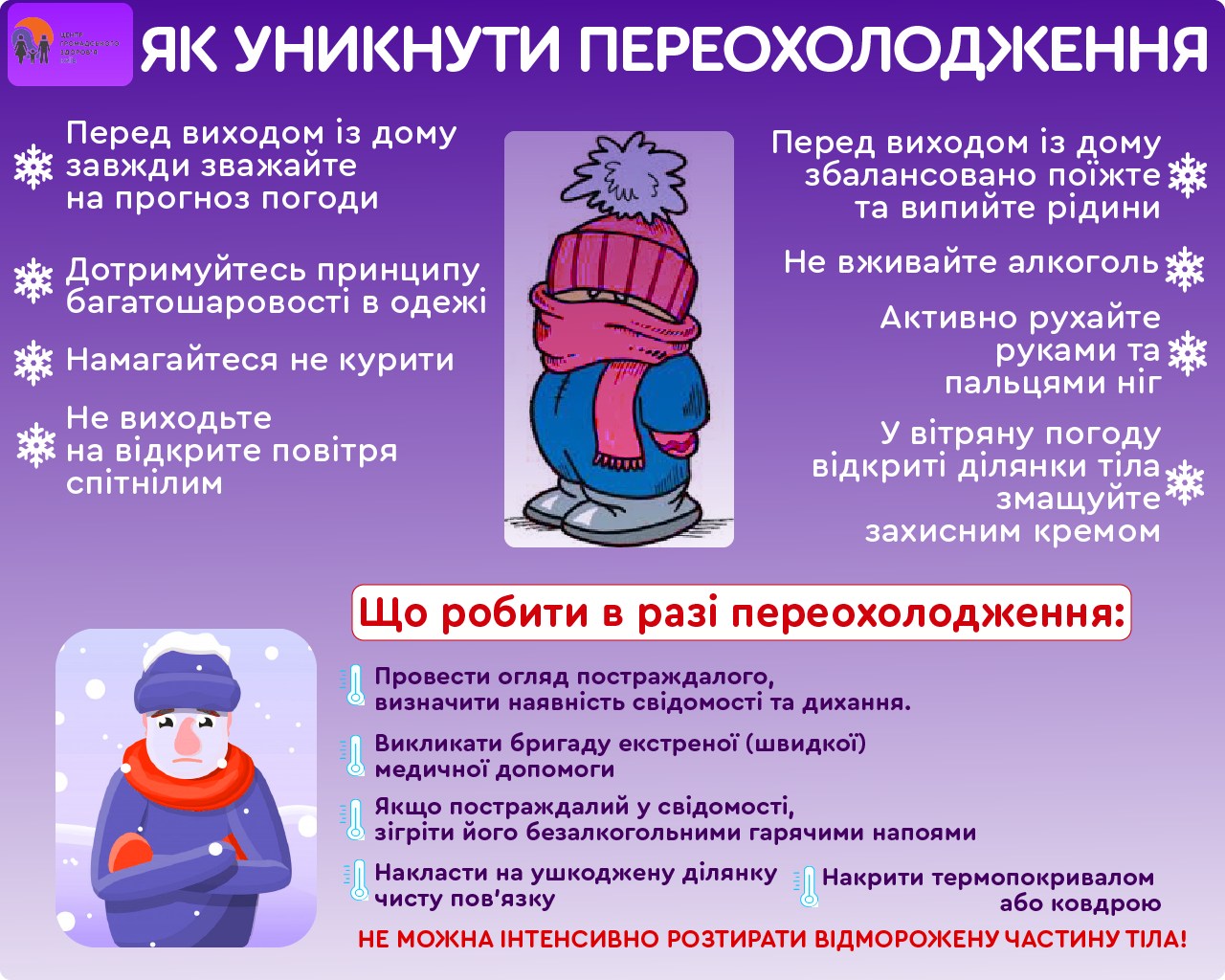 Переохолодження — це серйозний стан, який вимагає швидкої та грамотної допомоги. Знання простих правил і заборон допоможе уникнути фатальних помилок та врятувати здоров’я, а іноді й життя людини. Узимку особливо важливо бути уважними до себе та оточуючих.