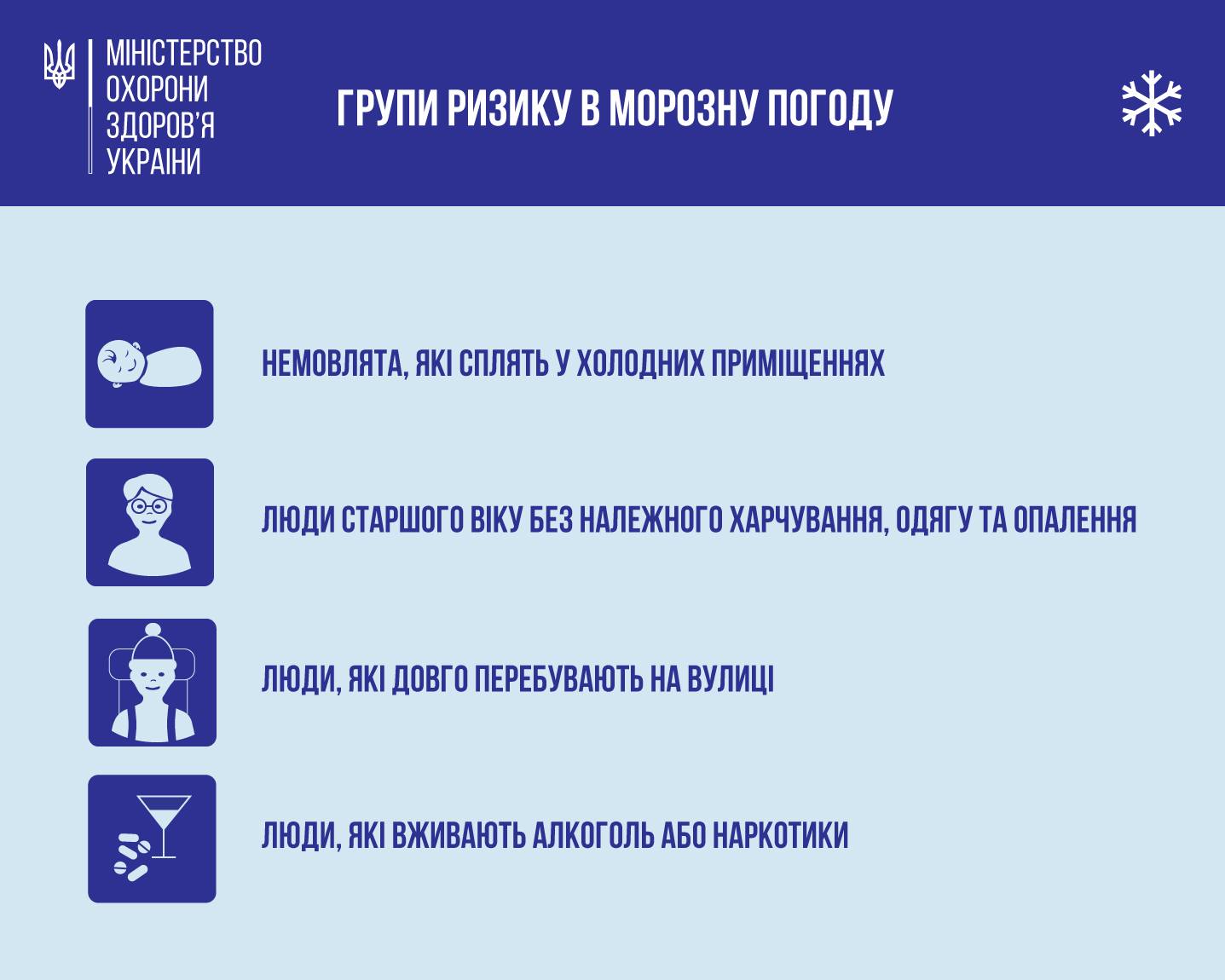🥶Переохолодження може статися навіть за відносно теплої погоди (вище 4°C), якщо людина промокла, спітніла або довго перебувала на холодному вітрі. А з настанням морозів ризик переохолоджень та обморожень зростає ще більше.