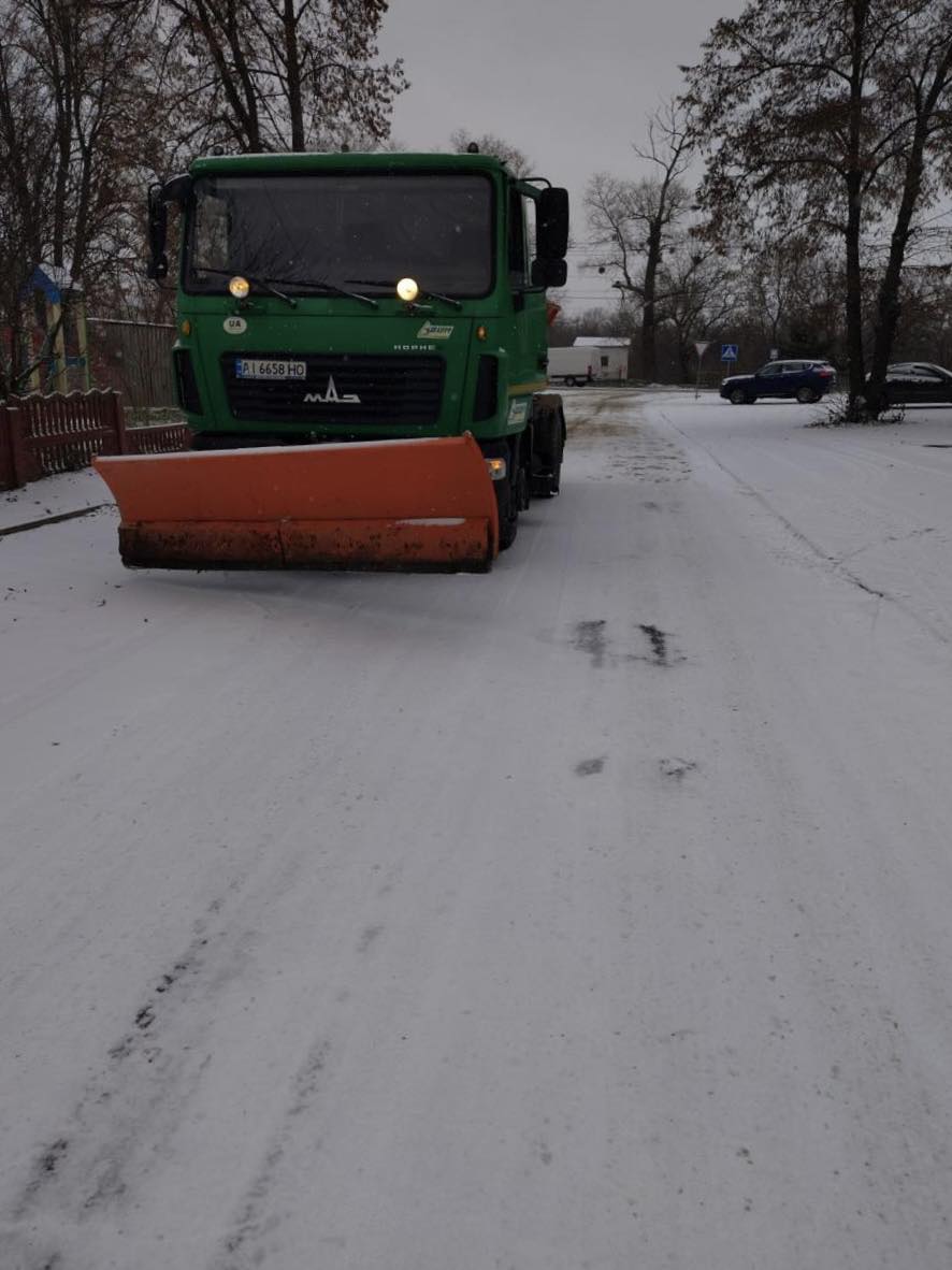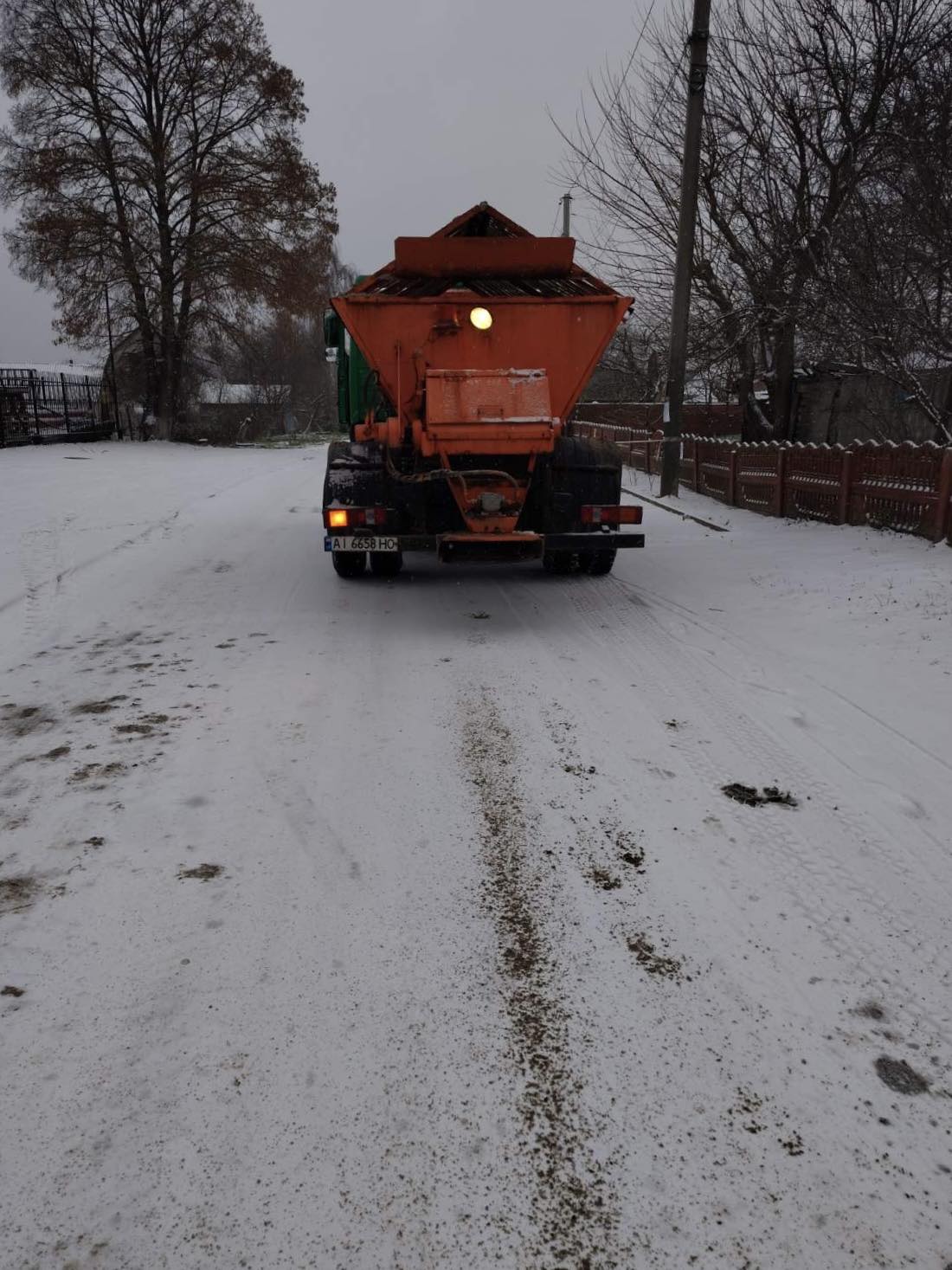 Із настанням першого снігу комунальні служби громади оперативно вивели техніку на дороги. Наразі піщано-сольовою сумішшю обробляють головні вулиці, перехрестя та тротуари для забезпечення безпечного руху.