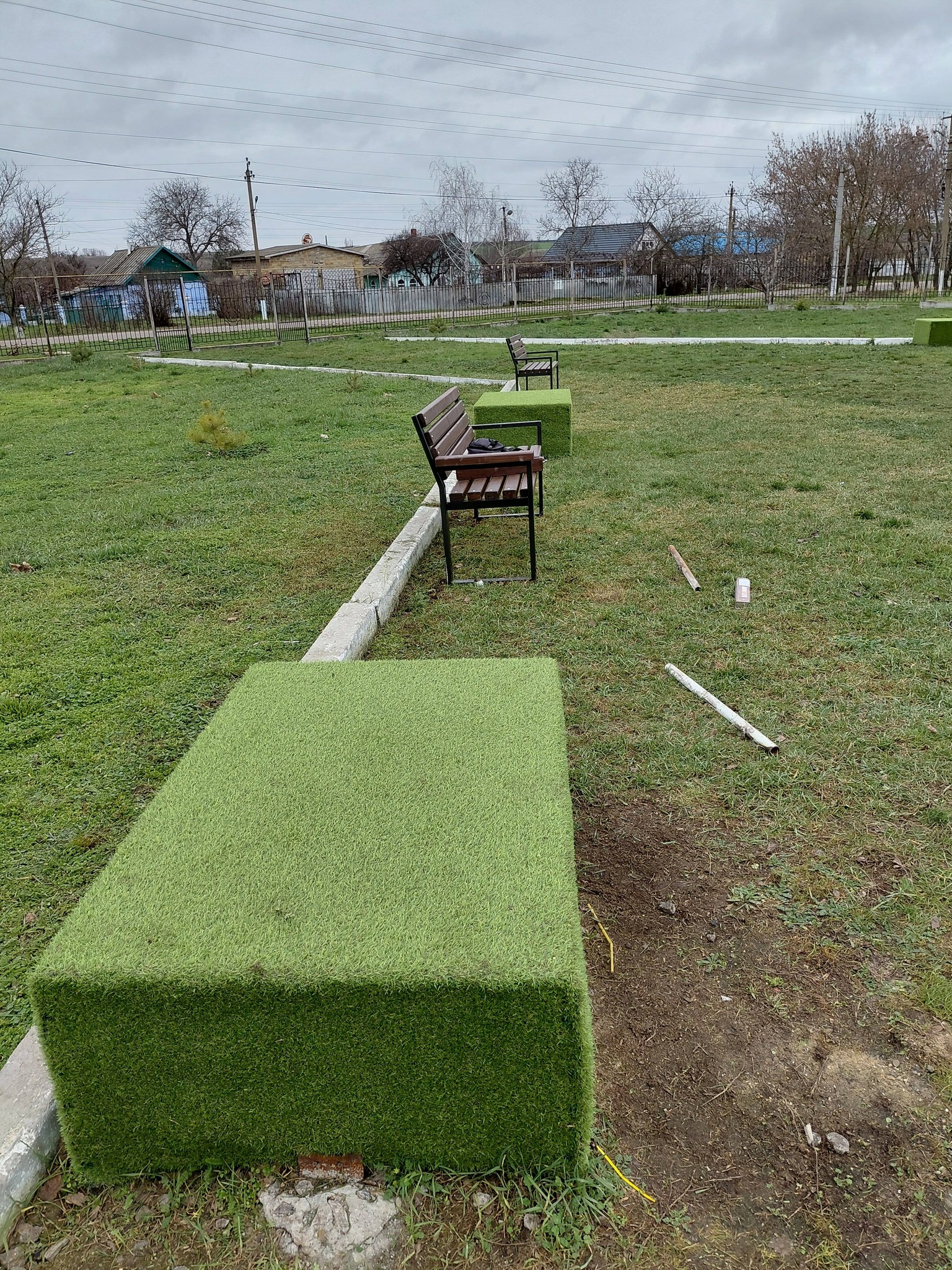 🔹 Сьогодні працівники благоустрою також виконували роботи у парку біля Меморіалу Героям. Сьогодні встановлено додаткові лавочки для комфортного відпочинку мешканців села та молоді.