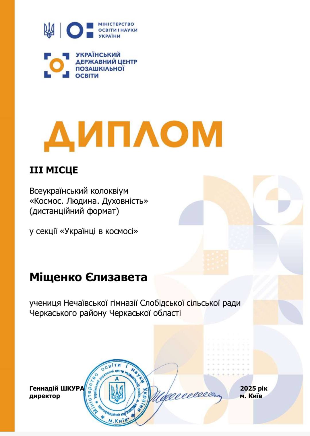 А дев’ятикласники Нечаївської гімназії гідно представили громаду та здобули призові місця у конкурсах, присвячених космосу та науці.