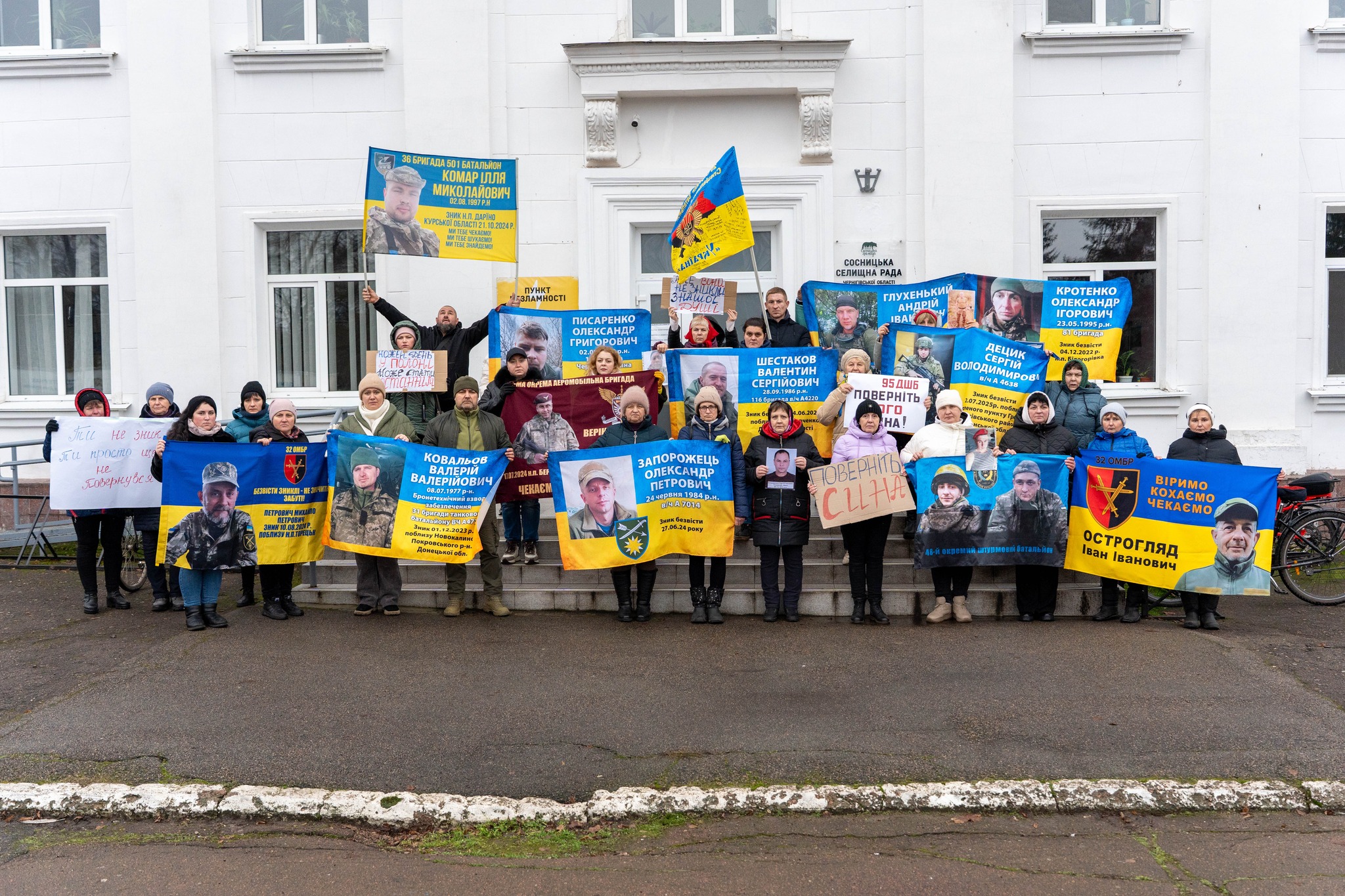 Сьогодні жителі Сосницької громади вийшли на мирну акцію, щоб підтримати українських військовослужбовців, які перебувають у полоні або вважаються зниклими безвісти.