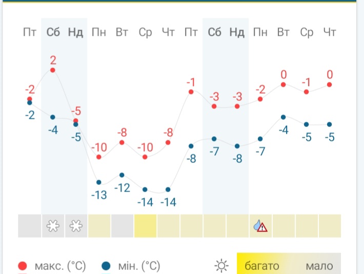 Стежте за прогнозом погоди. За можливості залишайтесь вдома, якщо температура повітря нижче -10 С🥶 . Пам’ятайте, що при наявності вітру 🌬️температура повітря відчувається значно холоднішою.