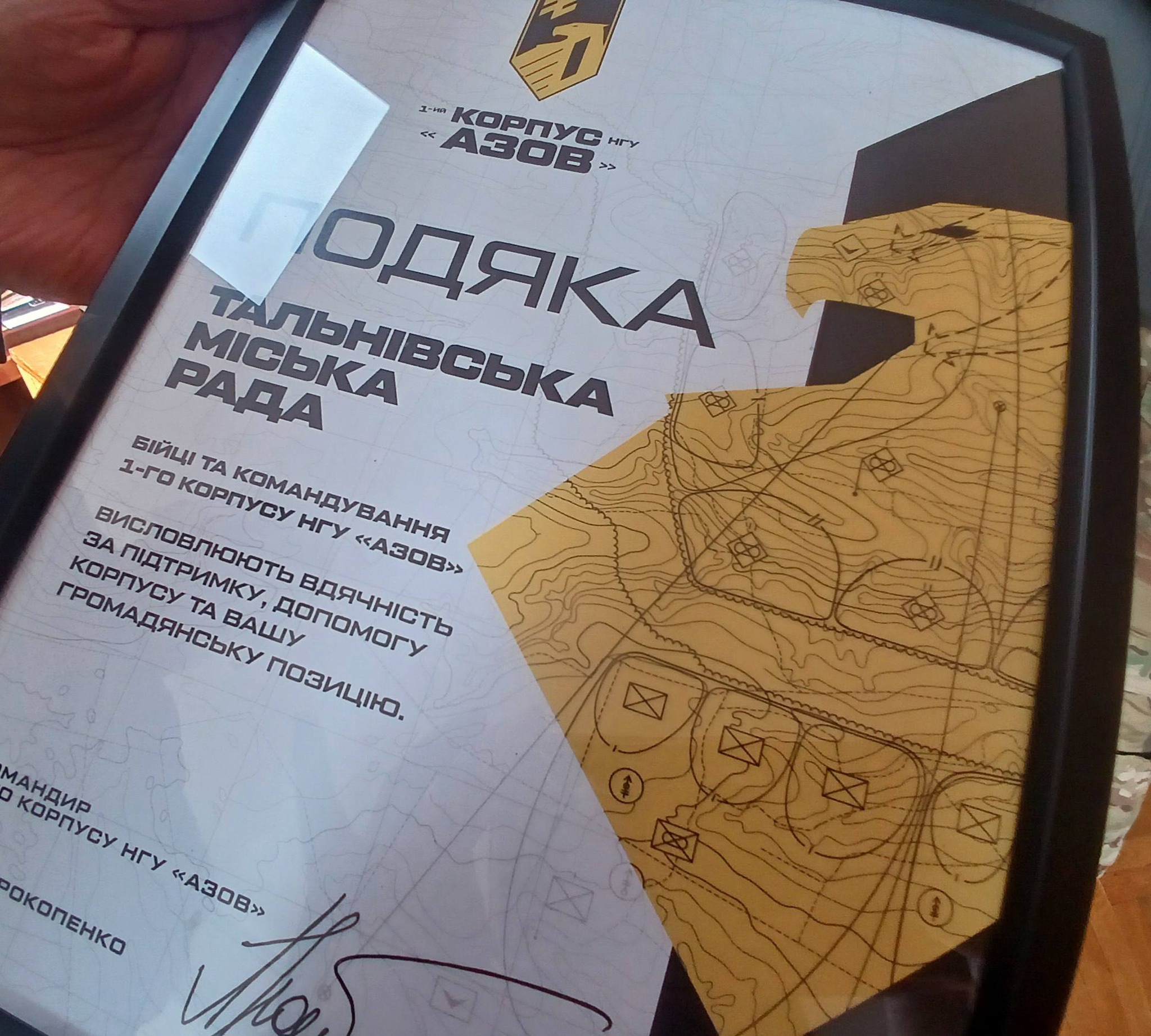 У документі висловлено щиру вдячність Тальнівській міській раді та всій громаді за постійну підтримку, допомогу й активну громадянську позицію у цей складний для країни час.