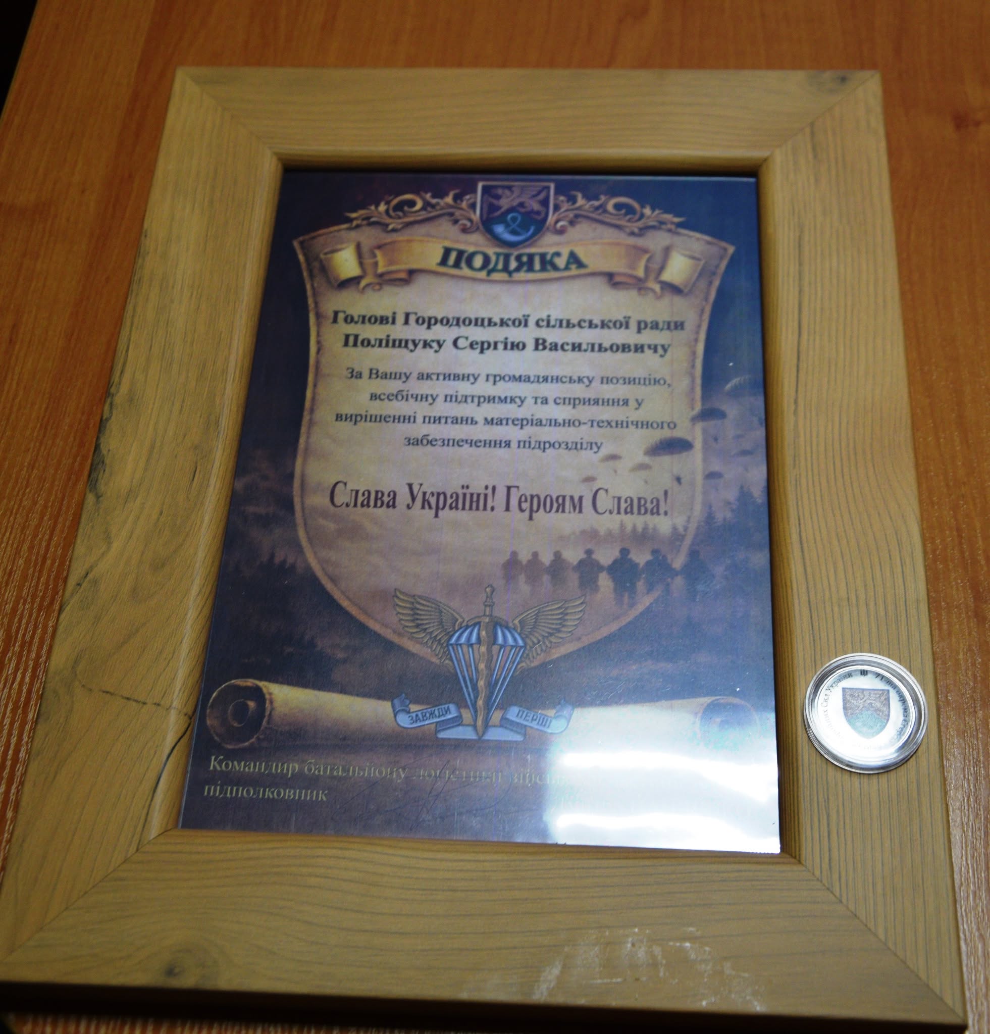 🪖🇺🇦 71 окрема аеромобільна бригада Десантно-штурмових військ Збройних Сил України вручила Подяку Городоцькому сільському голові за активну громадянську позицію, всебічну підтримку та сприяння у вирішенні питань матеріально-технічного забезпечення підрозділу.