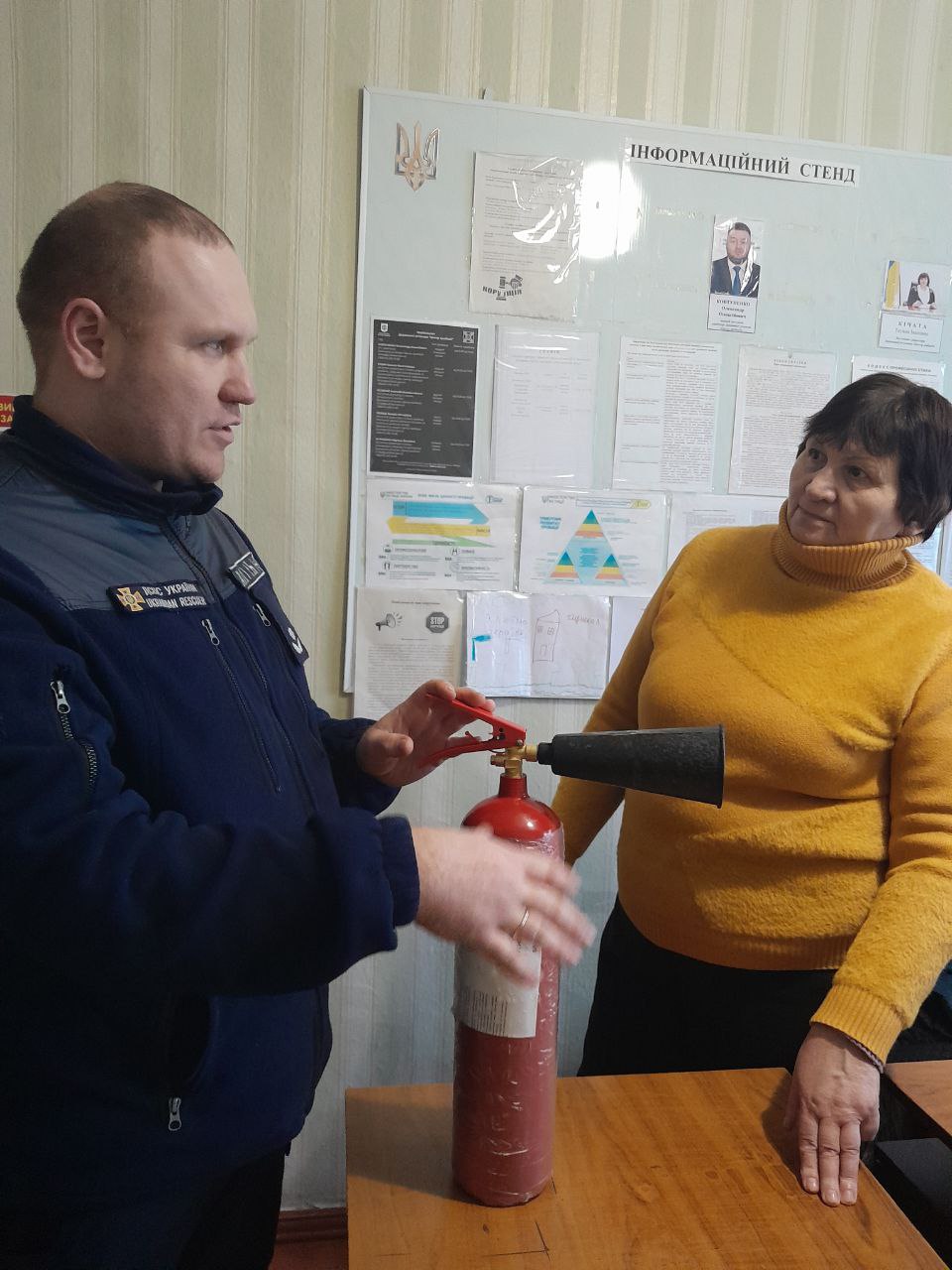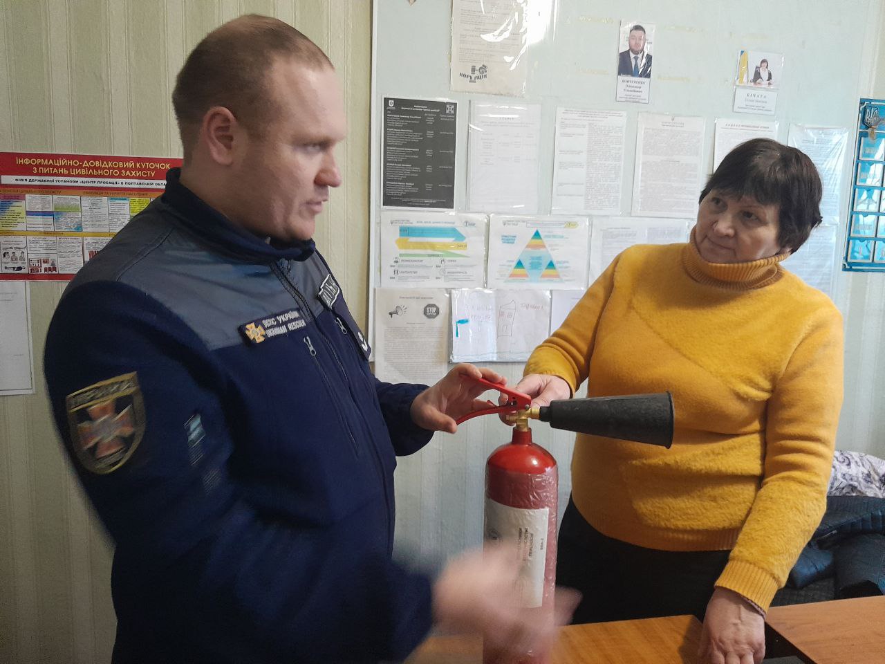 👨🚒 З метою підвищення рівня обізнаності працівників уповноваженого органу з питань пробації та забезпечення ефективного реагування на пожежі на початковій стадії начальник відділу № 3 Кременчуцького РУ ЦЗ та ПД ГУ ДСНС України у Полтавській області, майор служби цивільного захисту Віталій Жмінько, провів роз’яснювально-ознайомчу бесіду щодо використання вуглекислотного вогнегасника ВВК-2 🧯.