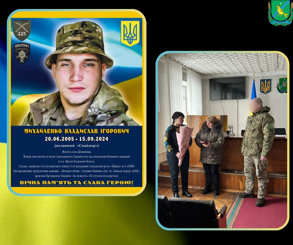 Полеглого Захисника України Владислава Михайленка, жителя села Доманівка, посмертно нагороджено орденом «За мужність» ІІІ ступеня. Державну нагороду отримала мама воїна — Катерина Іванівна.