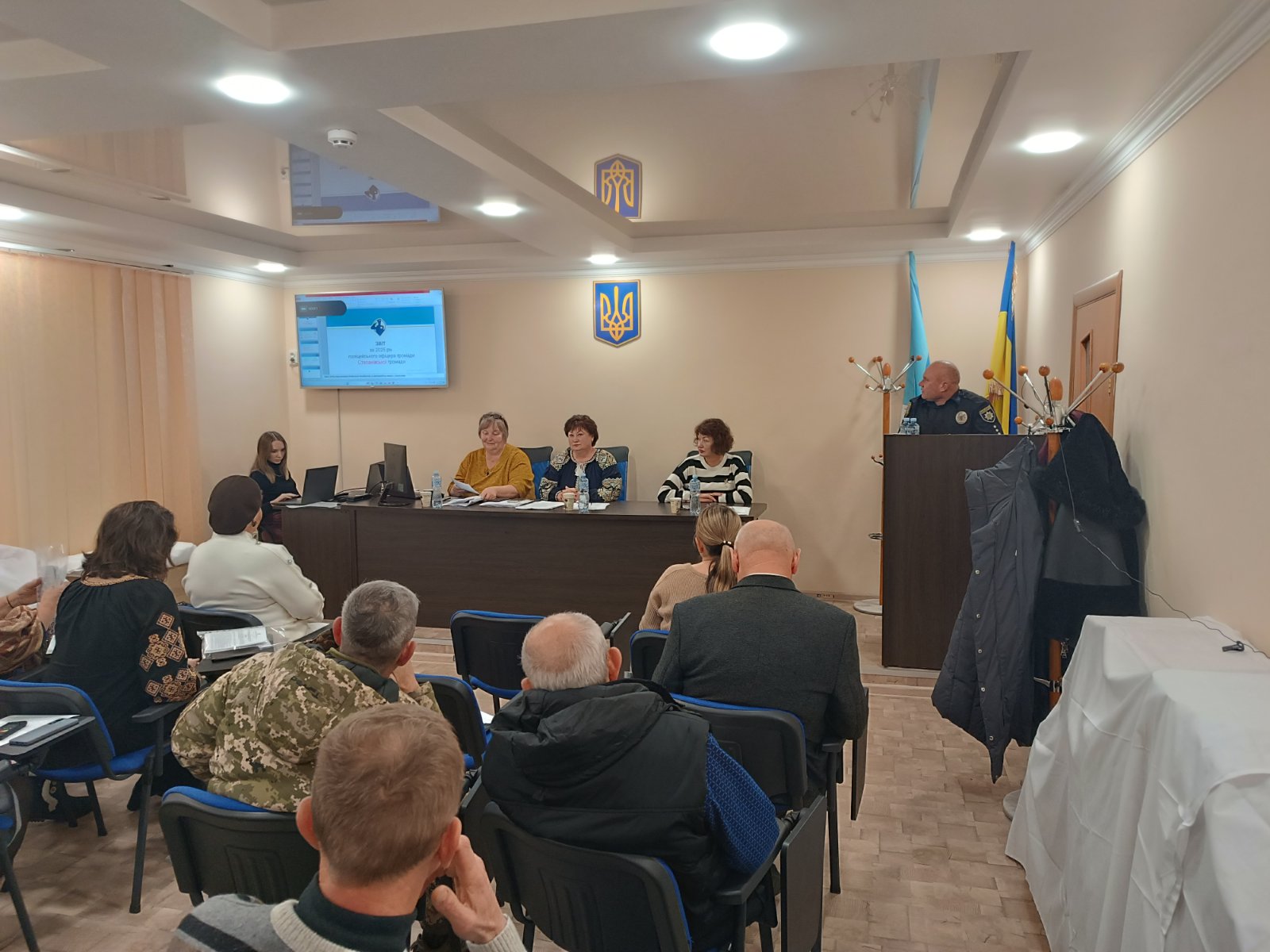 Поліцейський офіцер Степанівської громади капітан поліції Олександр Голоколосов доповів про результати своєї діяльності у сфері профілактики правопорушень, проведення індивідуально-профілактичної роботи протягом 2025 року та відповів на запитання мешканців громади.