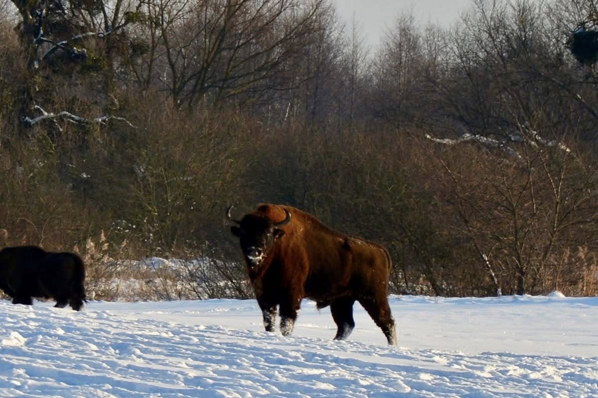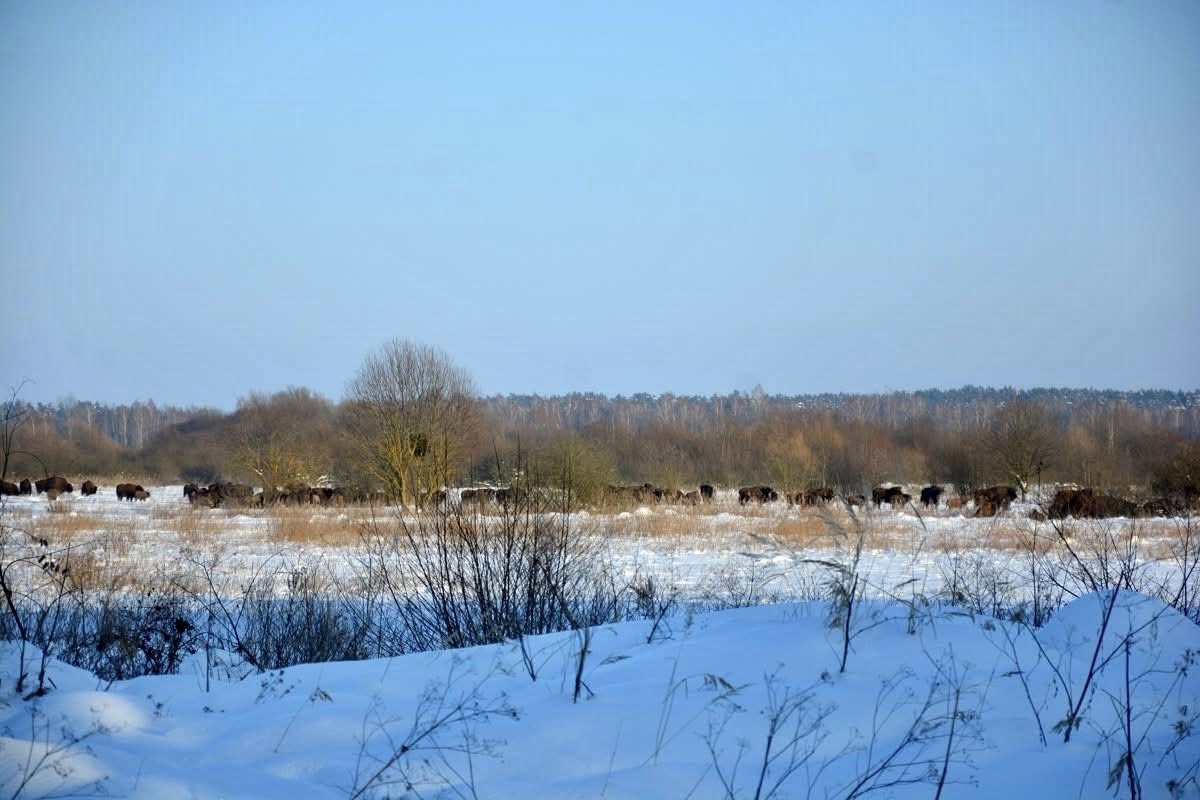 Морози та глибокий сніг змінюють звичні маршрути диких тварин. Цими днями на відкритих просторах, узліссях і поблизу лісів Бродівської громади можна було спостерігати стадо зубрів – найбільших наземних тварин Європи.