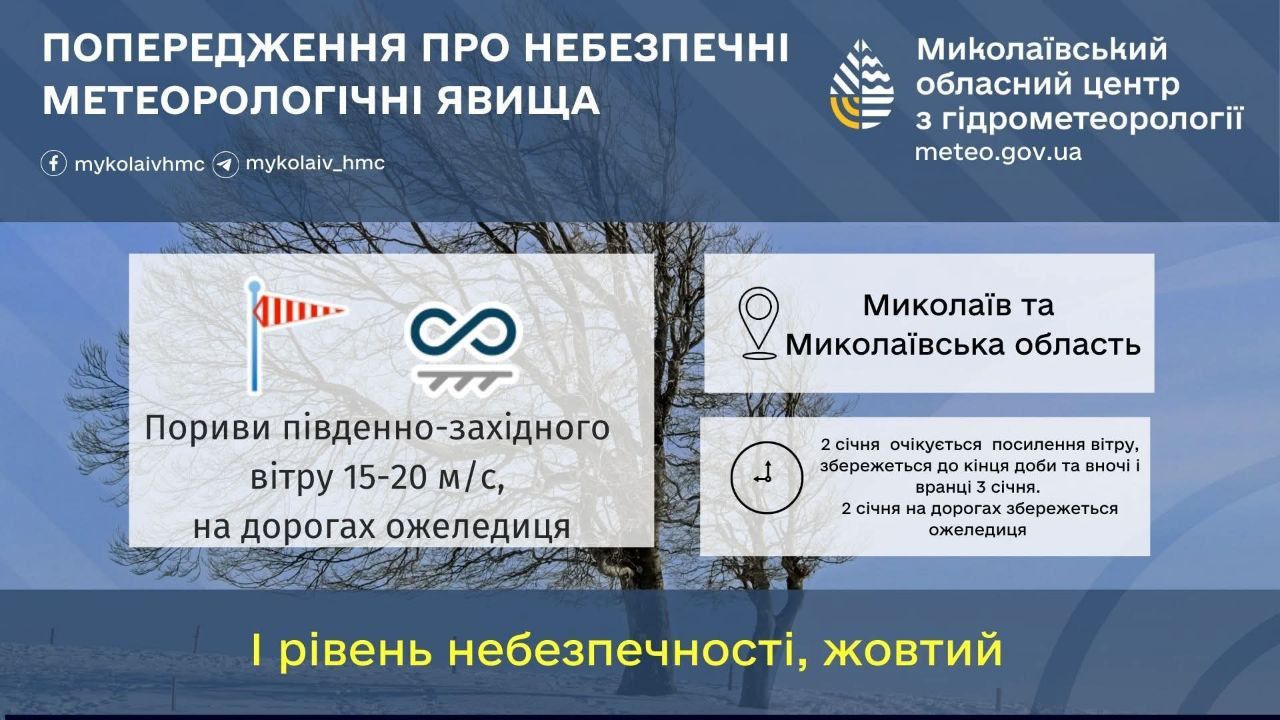 2 січня 2026 року по Миколаївській області та м.Миколаїв очікуються