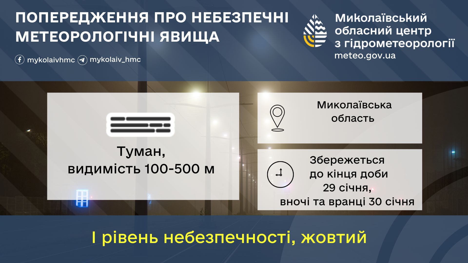 Збережеться до кінця доби 29 січня, вночі та вранці 30 січня 2026 року по Миколаївській області