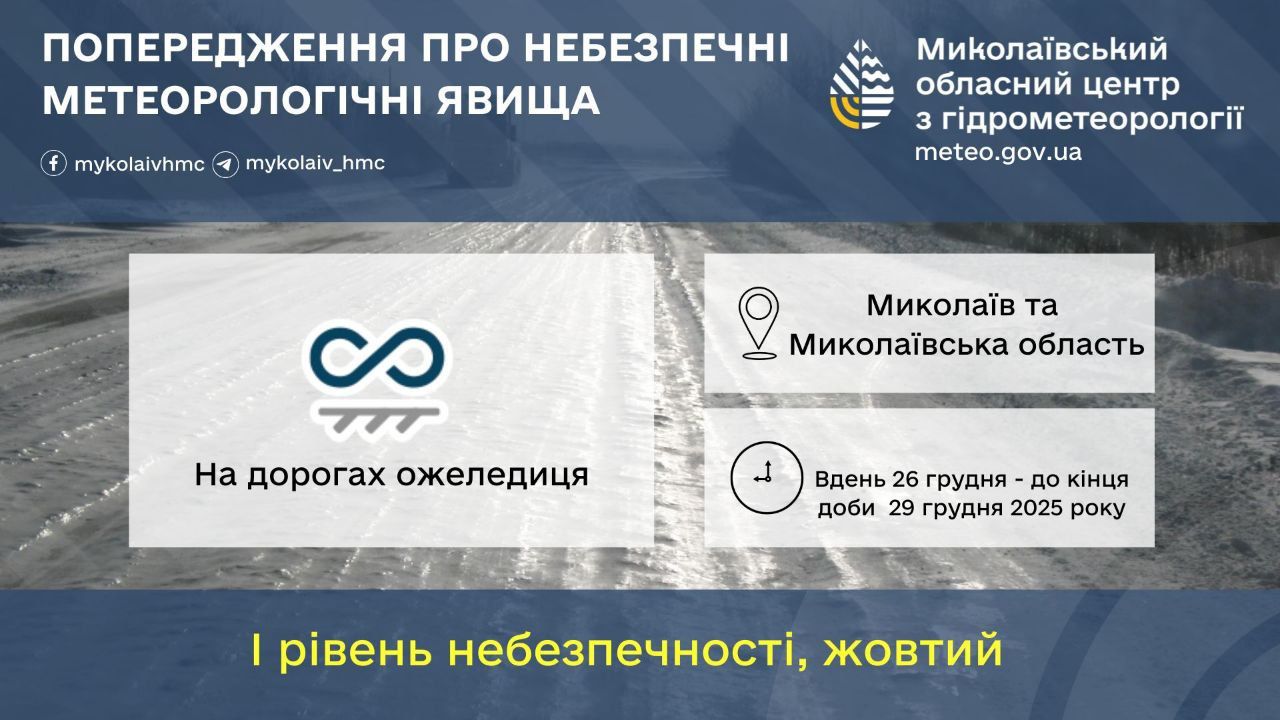 Збережеться до кінця доби 26 грудня та протягом 27-29 грудня 2025 року.
