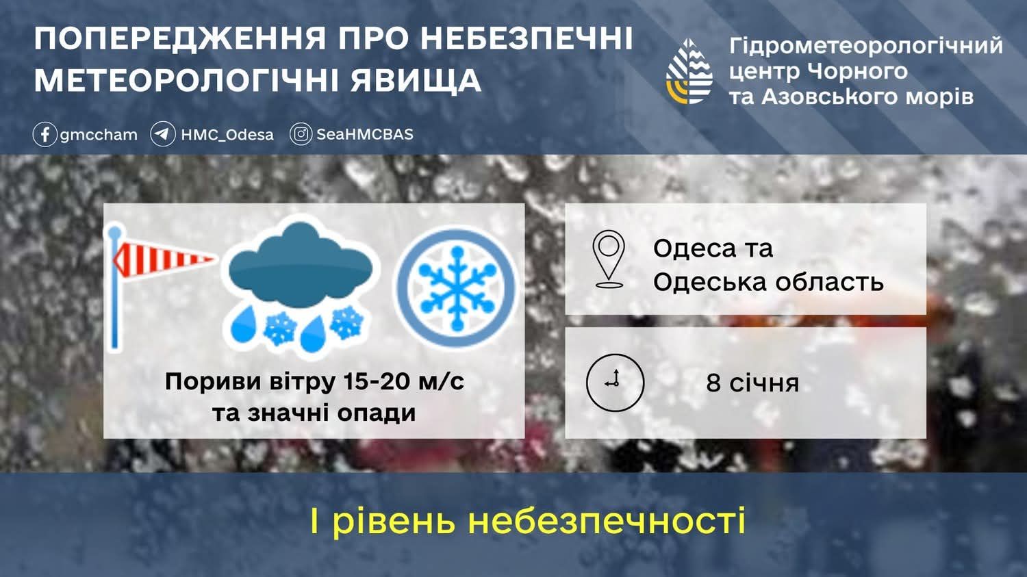 Вранці та в першій половині дня 8 січня очікуються пориви південного,
