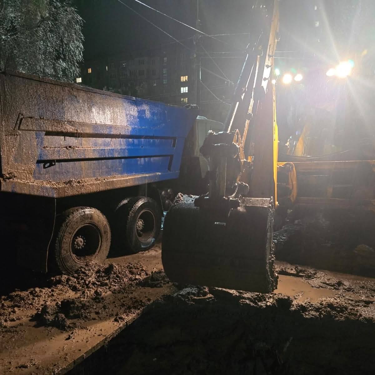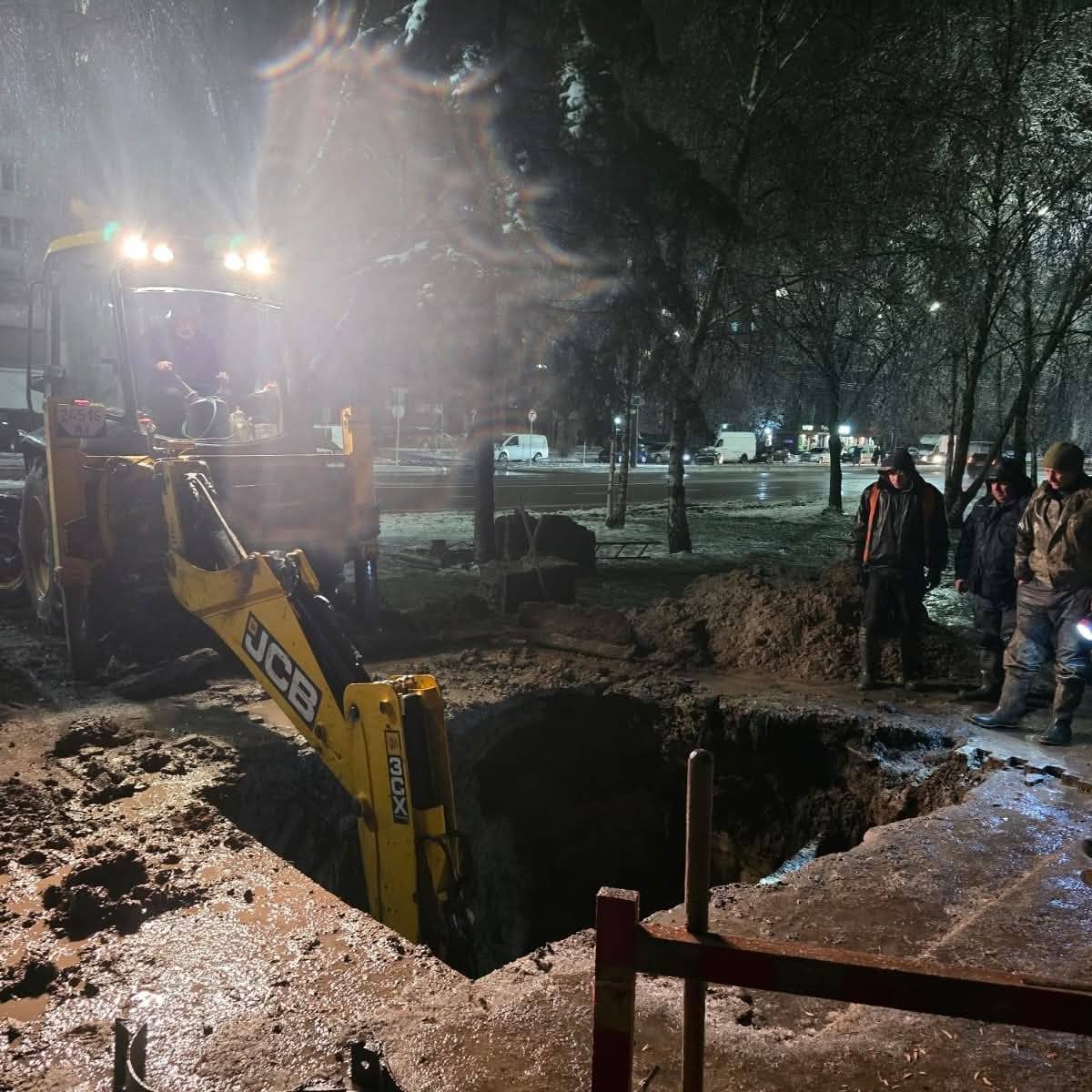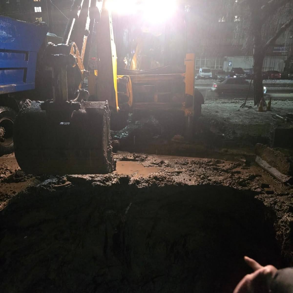 Просто зараз, під час негоди, комунальні служби ліквідовують аварійні ситуації, зокрема порив водопроводу на проспекті Незалежності (на фото).