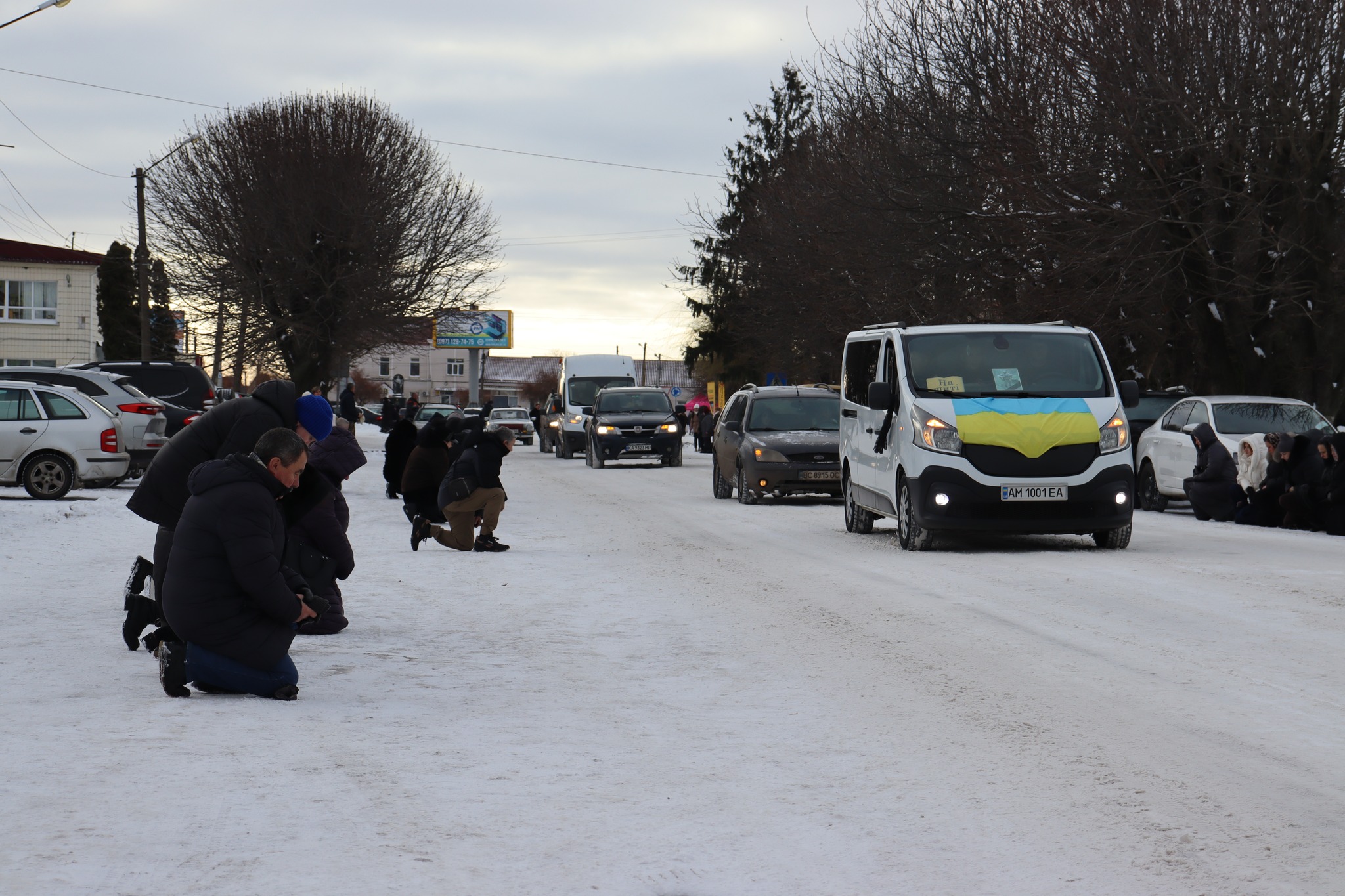 Зранку Героя зустріли живим коридором у селищі Попільні. Жителі громади з квітами, прапорами та сльозами на очах вшанували пам’ять воїна, який віддав своє життя за свободу і незалежність України.