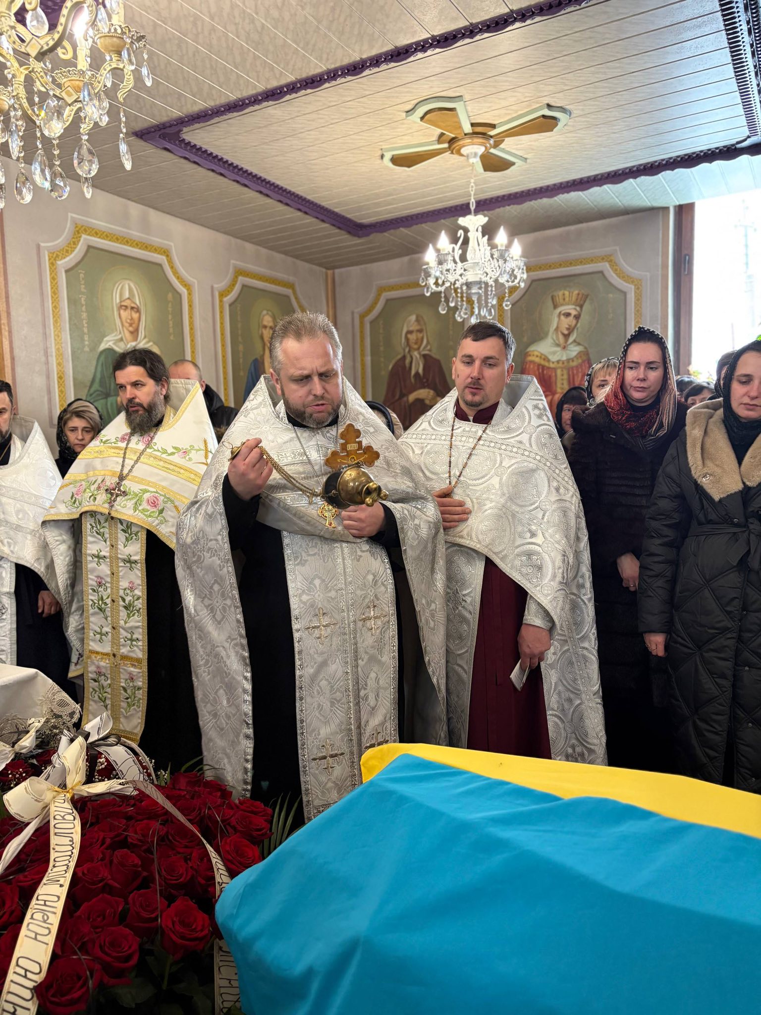 З глибокою скорботою духовенство, рідні, близькі, побратими та численні жителі громади зібралися, щоб провести Героя в останню земну дорогу. Під час заупокійного богослужіння лунали щирі молитви за упокій душі новопреставленого воїна та слова підтримки для його родини.