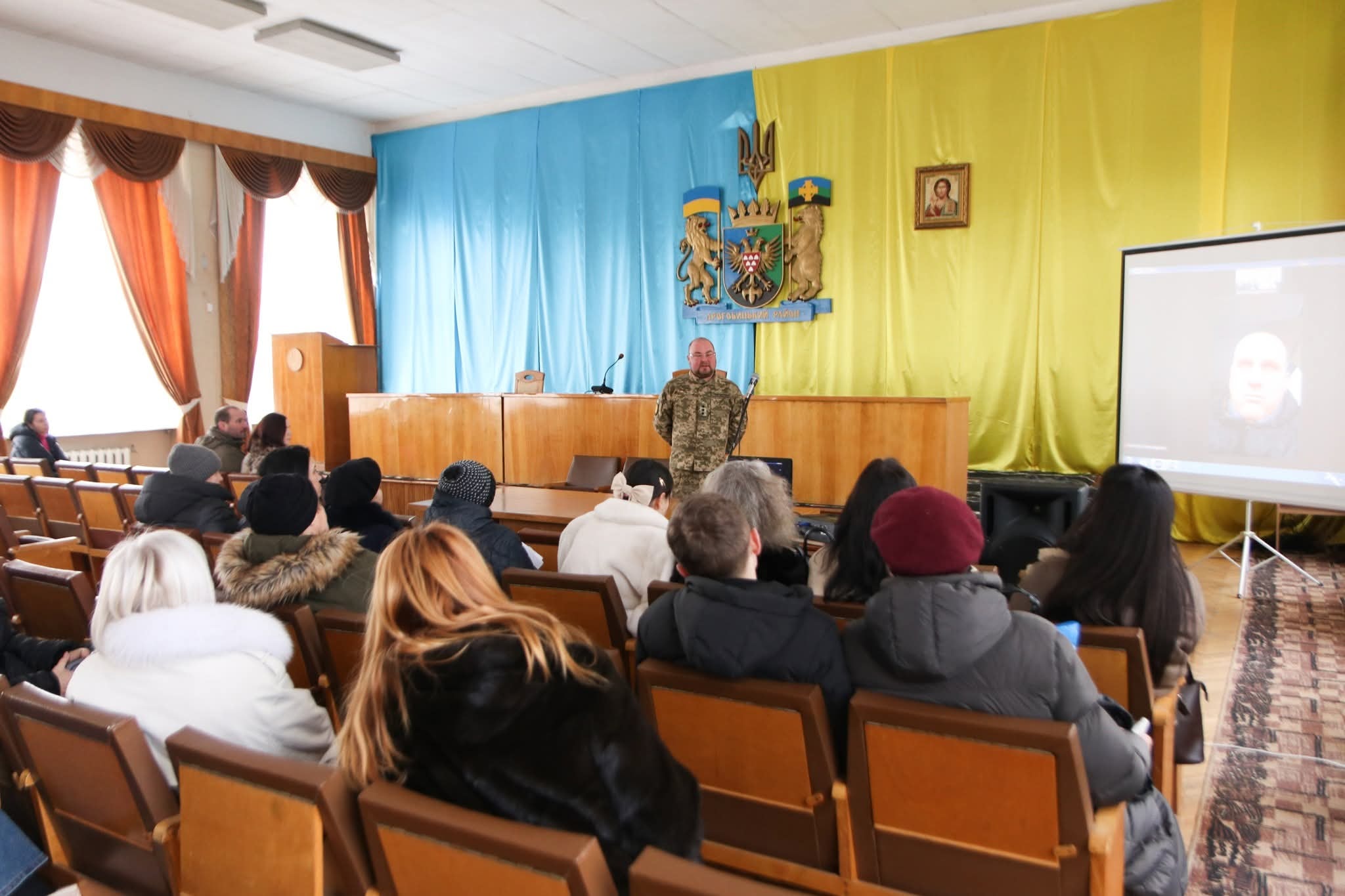 🤝 Зустріч пройшла у гібридному форматі: присутні могли поспілкуватись через Zoom із представником оперативного командування «Захід», а також наживо — із представником ТЦК та СП Дрогобиччини. 💻