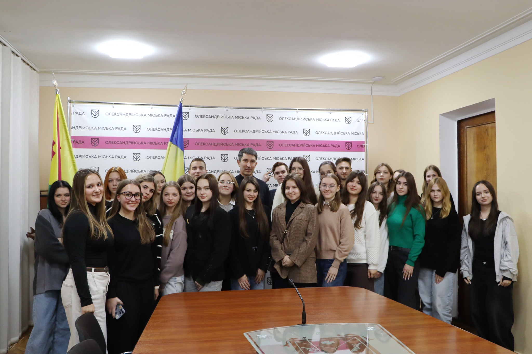 Представники учнівського та студентського самоврядування олександрійських ліцеїв і коледжів відвідали міську раду 8 грудня з нагоди Дня місцевого самоврядування. У заході взяли участь 27 дітей.