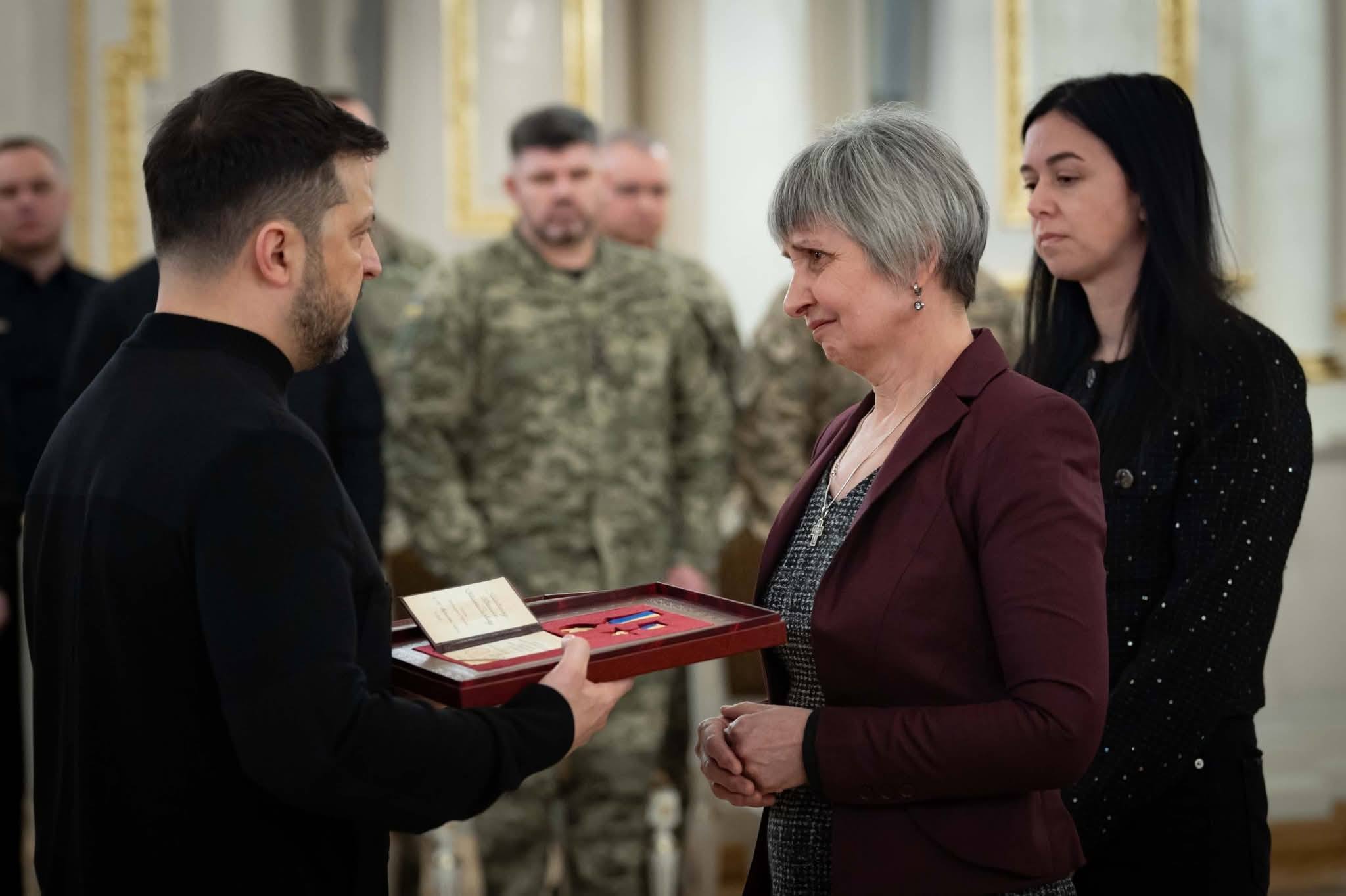 🎖 Президент України Володимир Зеленський під час урочистої церемонії вручення державних нагород передав орден «Золота Зірка» матері нашого воїна і Героя України (посмертно), старшого солдата Василя Шкварка.