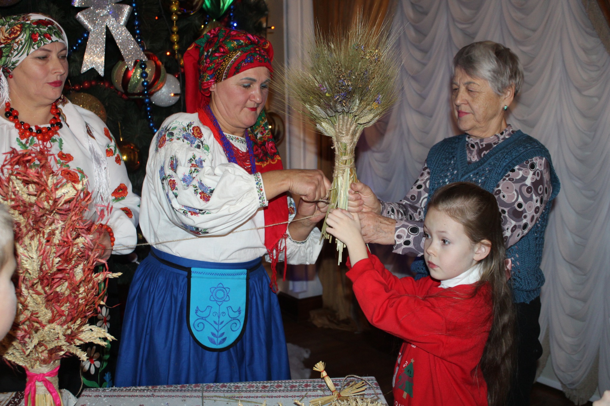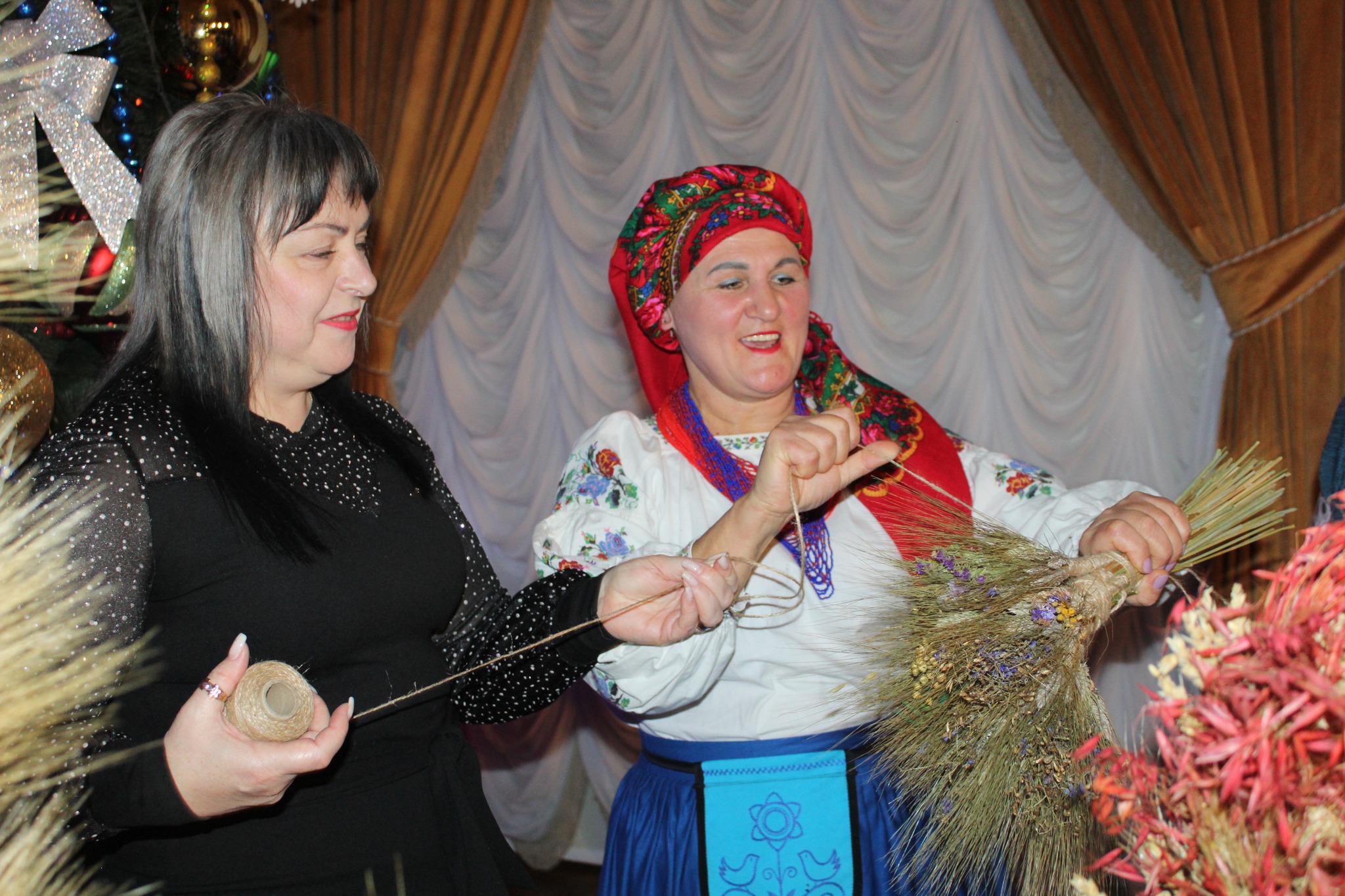 ❄️Власне сам захід складався з двох частин. У першій презентували Дідух– обжинковий сніп, оберіг родини, який заносять у хату на Святий вечір та солом’яного Різдвяного павука, що єднає всю рідню. Майстер клас з їх виготовлення провела майстриня Валентина М’якота під пісенний супровід Світлани Джурки. Про історію традицій та особливість звичаїв розповіли працівники культури Світлана Северин та Валентина Захарченко. Присутні встигли спробувати затанцювати, як раніше це робили, поворожити варениками на долю, скуштувати різдвяного хліба – книша. Всі отримали цінні поради, якими користувалися ще наші пращури в давні часи, аби бути здоровими, щасливими і заможними.