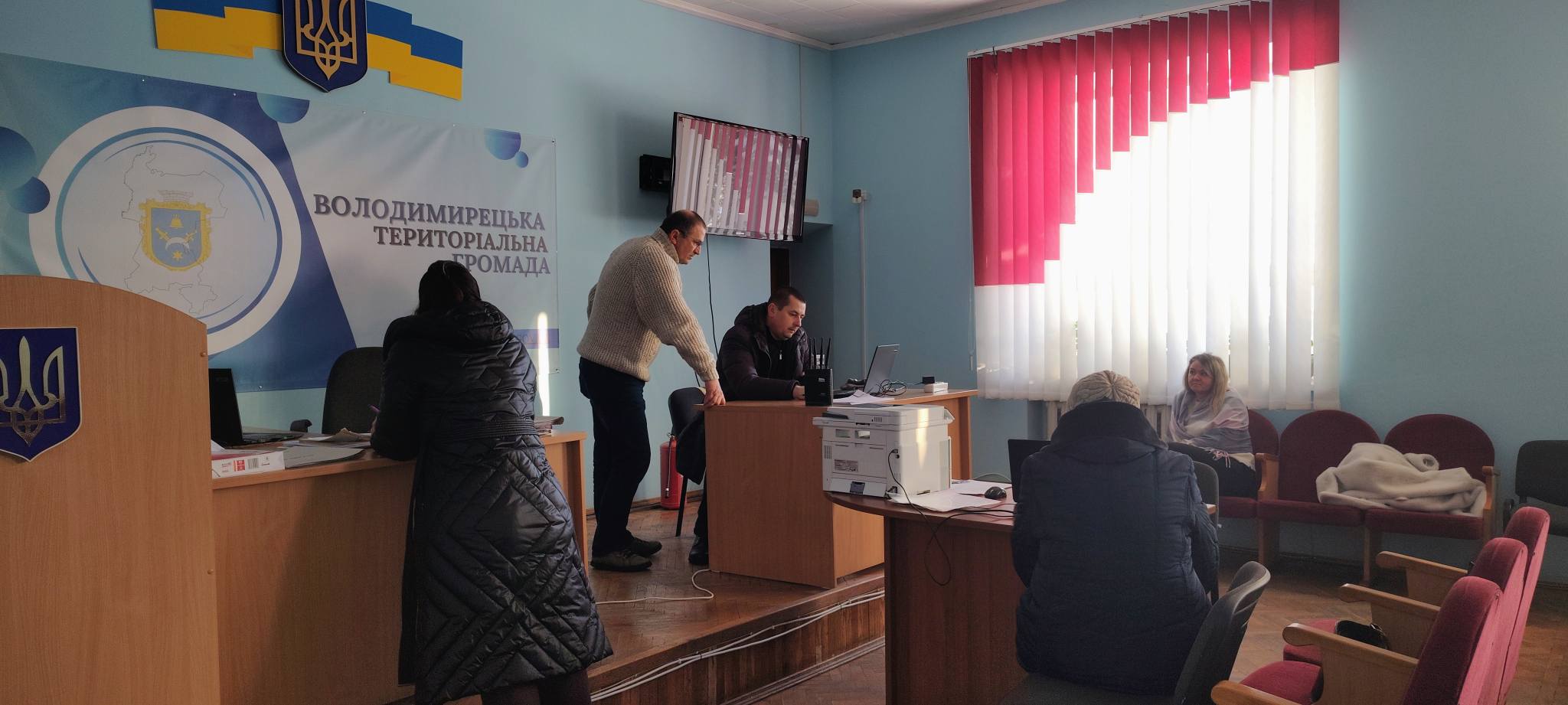 Роботу забезпечують на першому поверсі приміщення Володимирецької селищної ради, що дозволяє прийняти відвідувачів, надати необхідні консультації та опрацювати звернення у повному обсязі.
