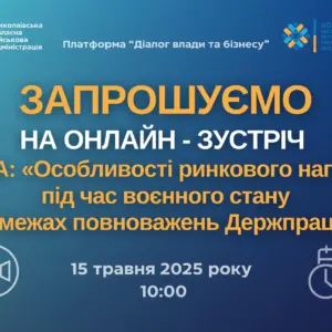 Діалог влади та бізнесу» триває: запрошуємо представників бізнесу взяти участь в онлайн-зустрічі на тему: «Особливості ринкового нагляду під час воєнного стану в межах повноважень Держпраці»