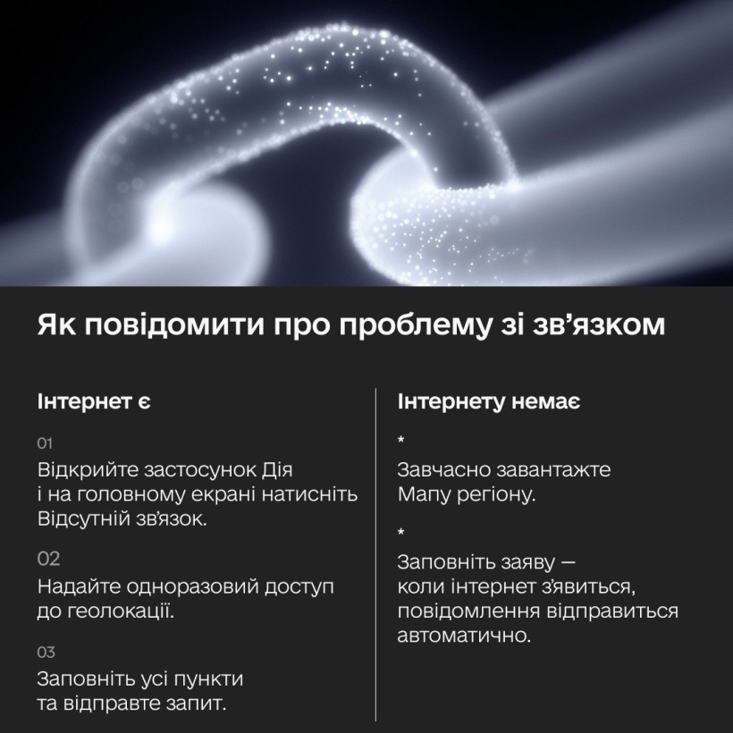 Проблеми зі зв’язком або інтернетом: повідомляйте через застосунок «Дія» Зникає…