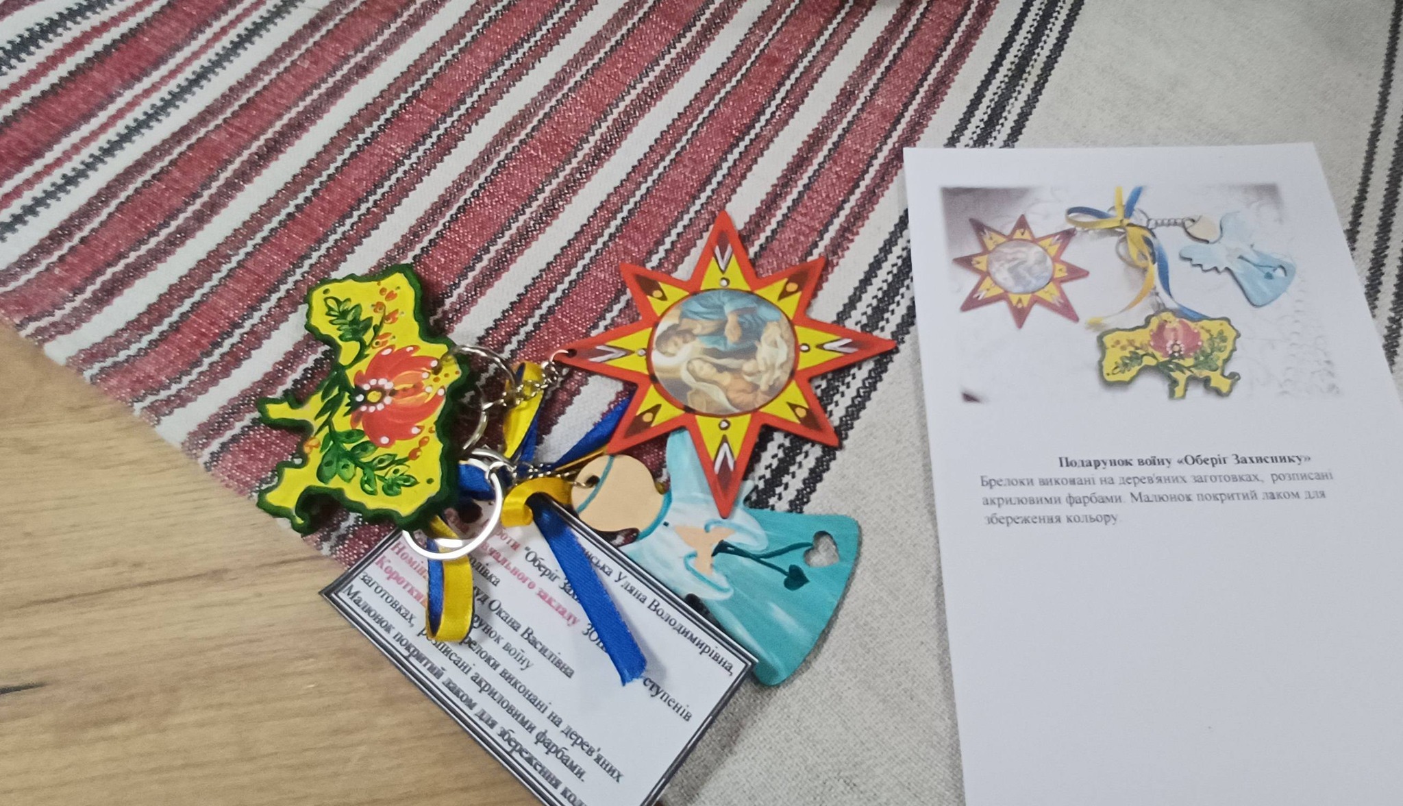 напрямок «Подарунок воїну» – робота «Оберіг Захиснику» Білянської Уляни, учениці 5 класу ЗОШ І-ІІІ ступенів села Постолівка (керівник: Жмуд О.В.)