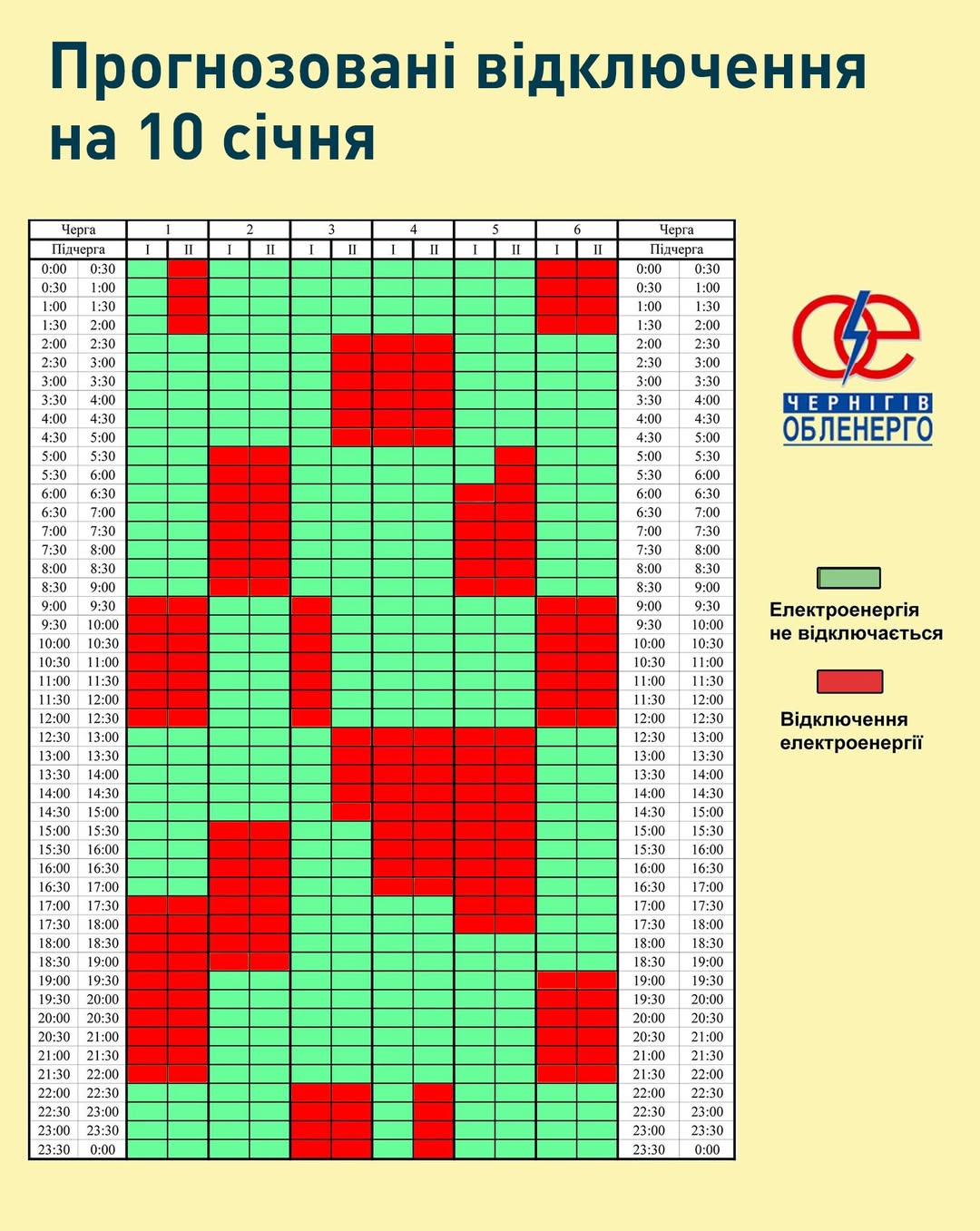 Якщо ситуація в енергосистемі змінюватиметься, графік коригуватиметься, тож просимо слідкувати за офіційними ресурсами Чернігівобленерго