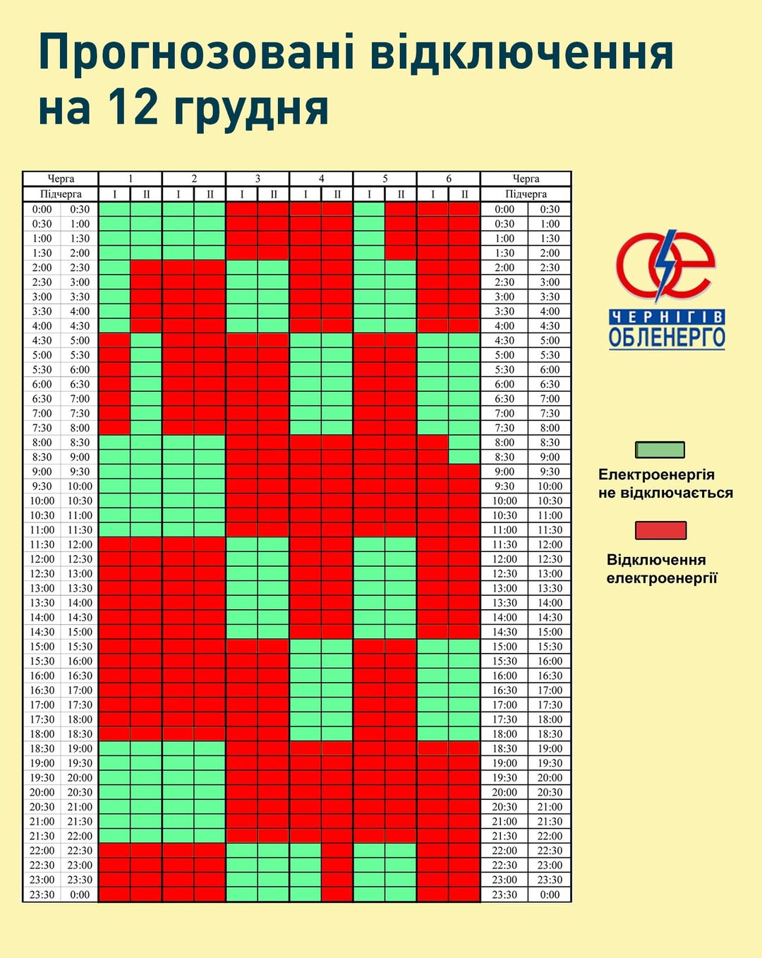 Якщо ситуація в енергосистемі змінюватиметься, графік коригуватиметься, тож просимо слідкувати за офіційними ресурсами Чернігівобленерго