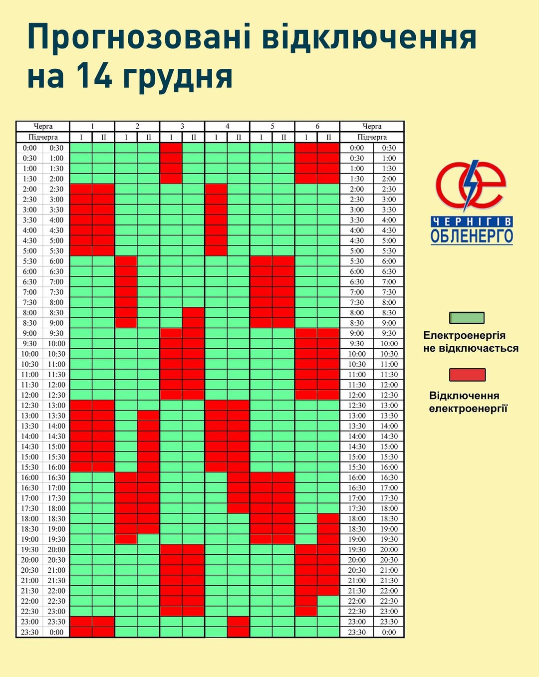 📅⚡️ Прогнозовані відключення на 14 грудня