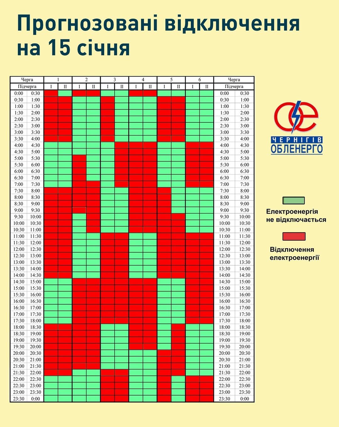 Якщо ситуація в енергосистемі змінюватиметься, графік коригуватиметься, тож просимо слідкувати за офіційними ресурсами Чернігівобленерго