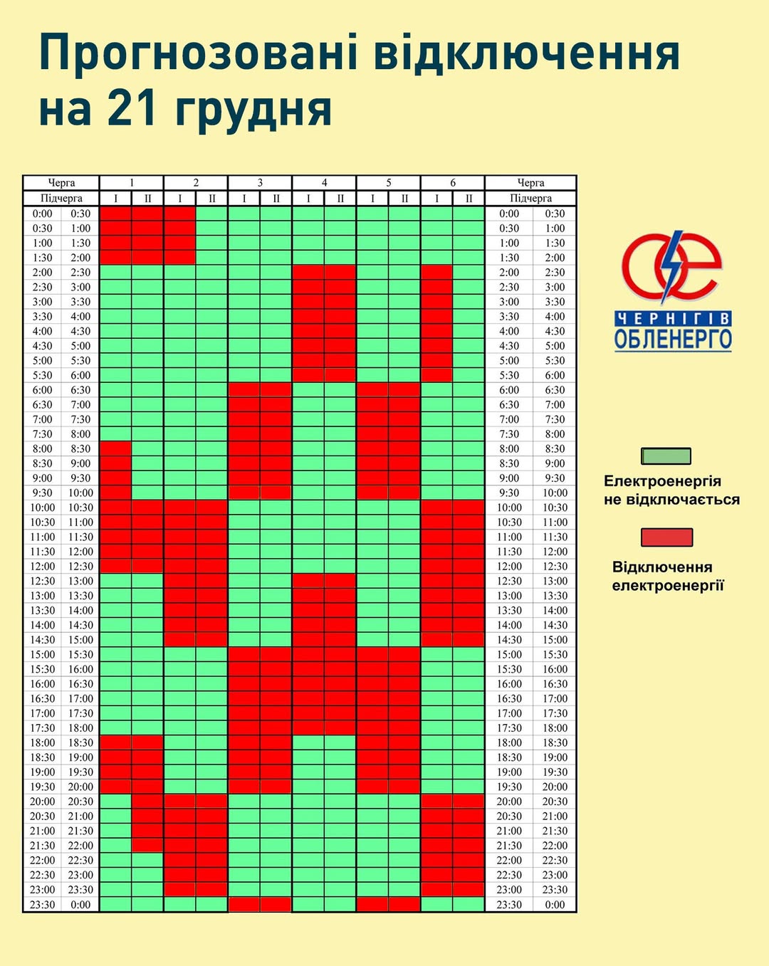 📅⚡️ Прогнозовані відключення на 21 грудня