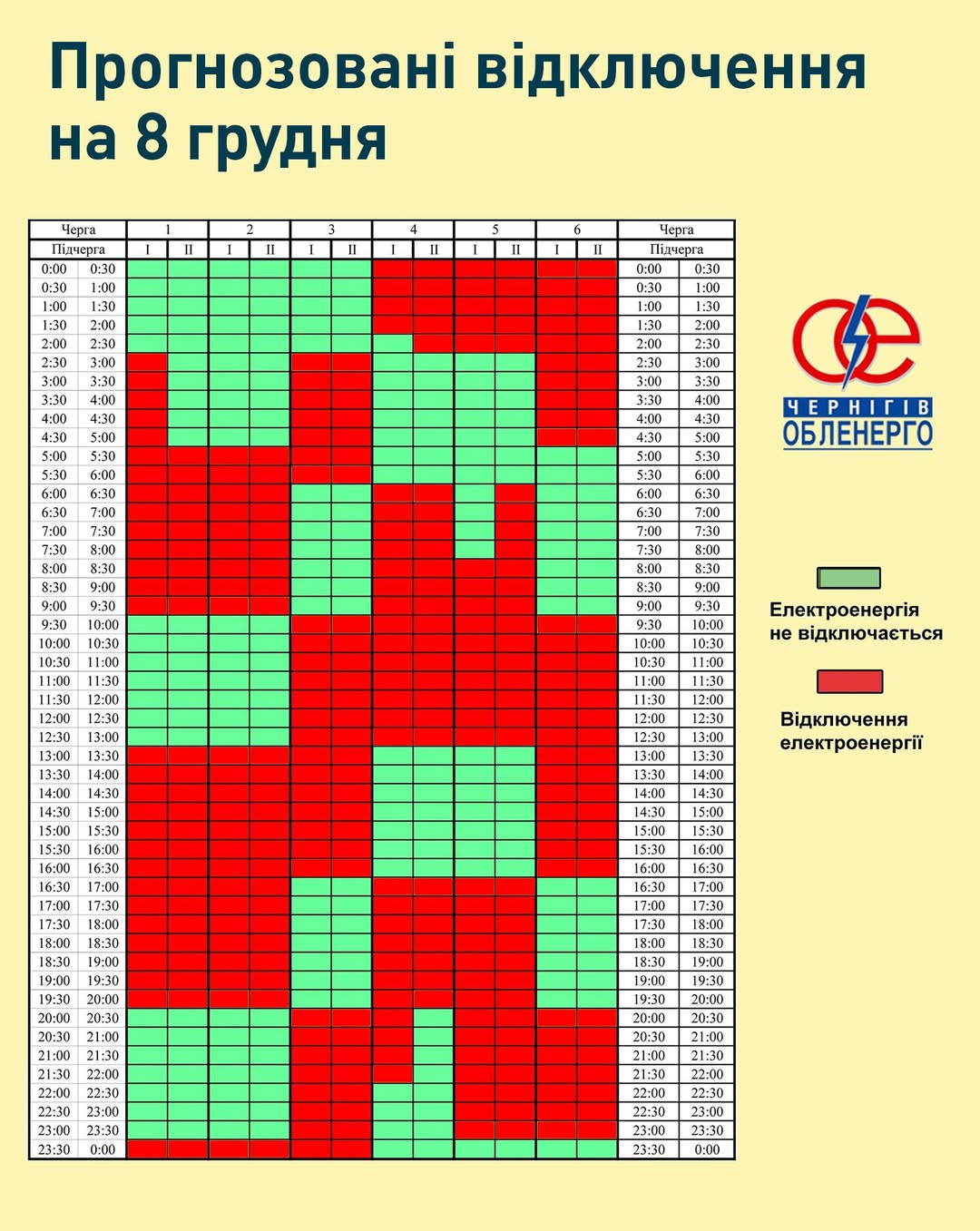 📅⚡️ Прогнозовані відключення на 8 грудня