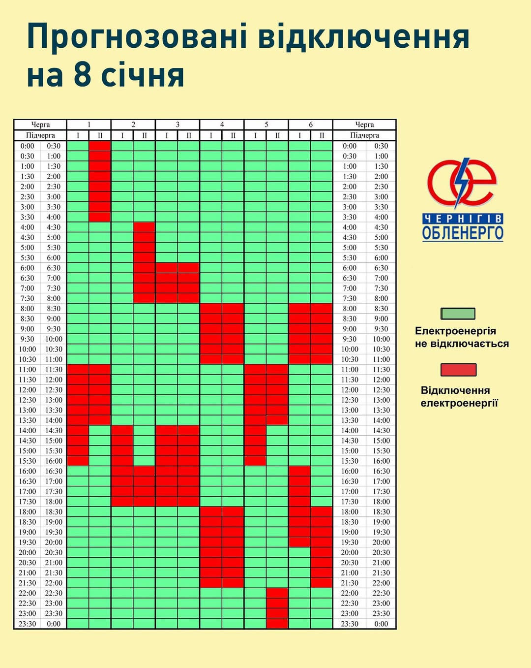 📅⚡️ Прогнозовані відключення на 8 січня