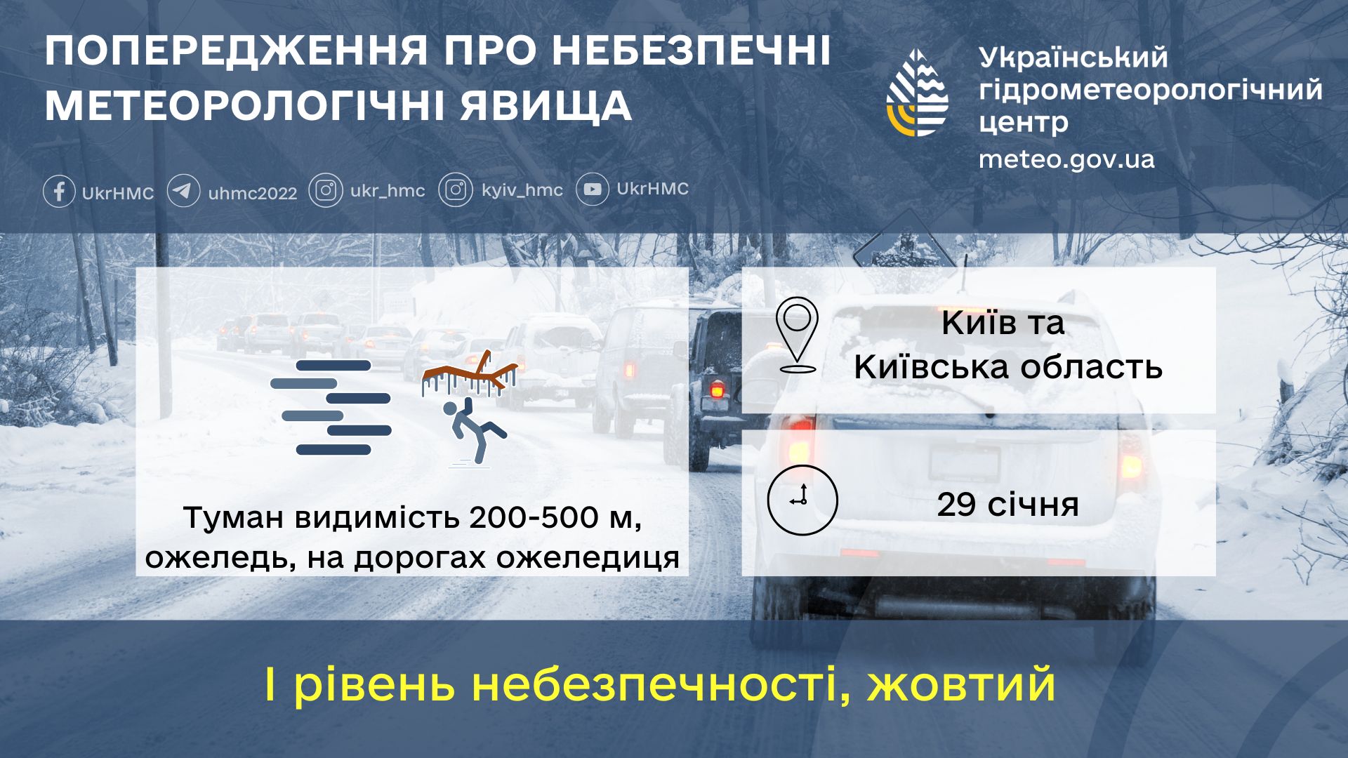 29 січня на дорогах ожеледиця, вночі та вранці туман, видимість 200-500 м, ожеледь.