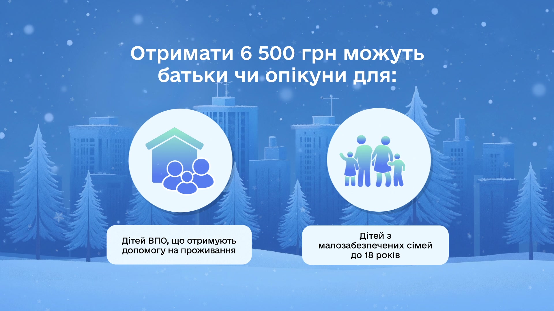 Програма виплат одноразової грошової допомоги розміром 6500 грн для найбільш вразливих категорій громадян діє в рамках пакета «Зимова підтримка». Вона розрахована на людей, які найбільше потребують підтримки: